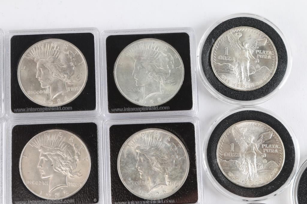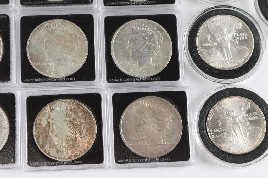 Lot 874 Lot of Morgan, Peace Silver Dollars & Mexican 1 Oz