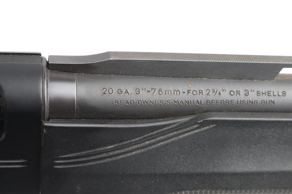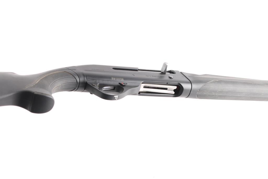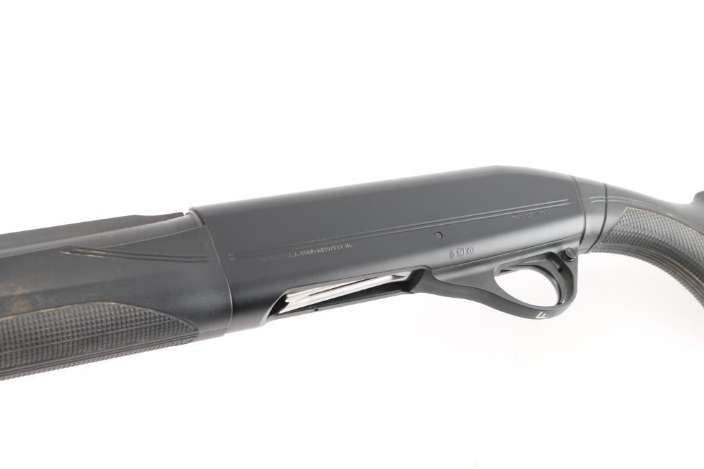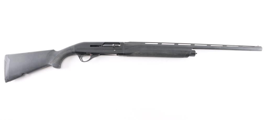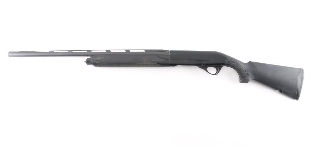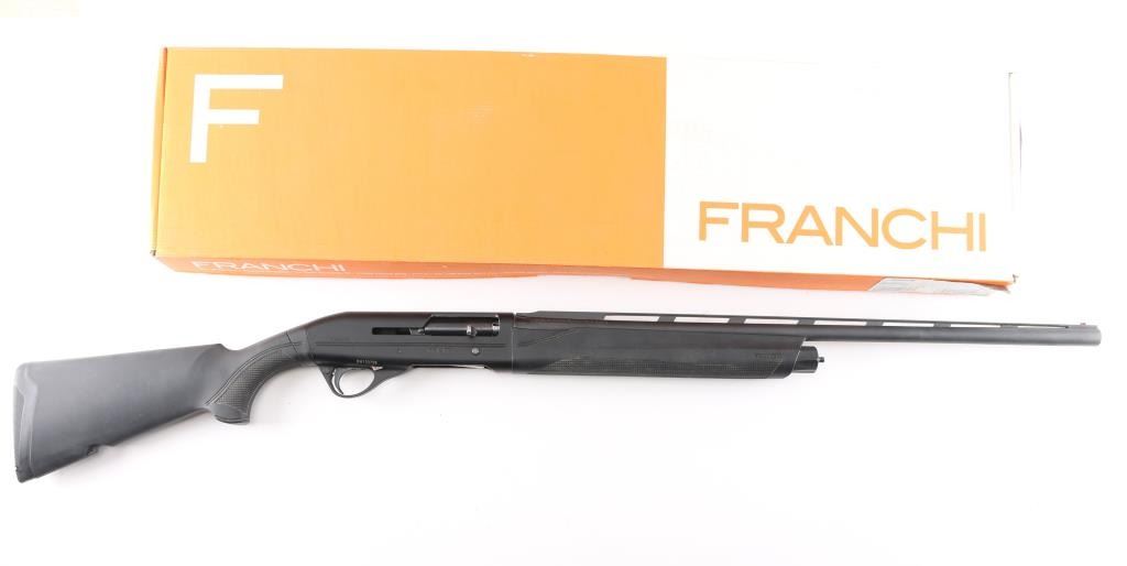 Italian made by Franchi inertia driven semiautomatic shotgun. Imported by Benelli U.S.A. Manufactured 2019. 26" vent rib parkerized barrel , red fiber optic front sight, matte black receiver, push button safety,interchangeable chokes, black polymer stocks with checkering on the wrist and forearm, factory rubber recoil pad. Cyl choke installed. Bore is excellent/bright, finish is about 98% with some very minor scratches, action is smooth and the stocks are excellent with some very minor scratches .LOP is 14 1/4". Comes in original factory box with manual, Four spacers, two choke tubes, Full and Mod and choke wrench. NRA Condition-Excellent. Modern Firearm.