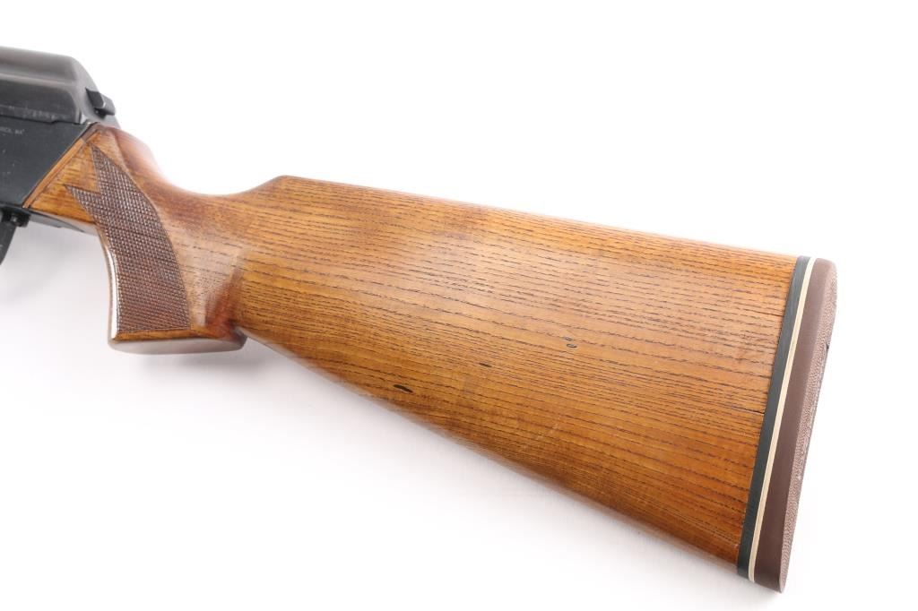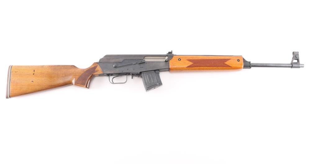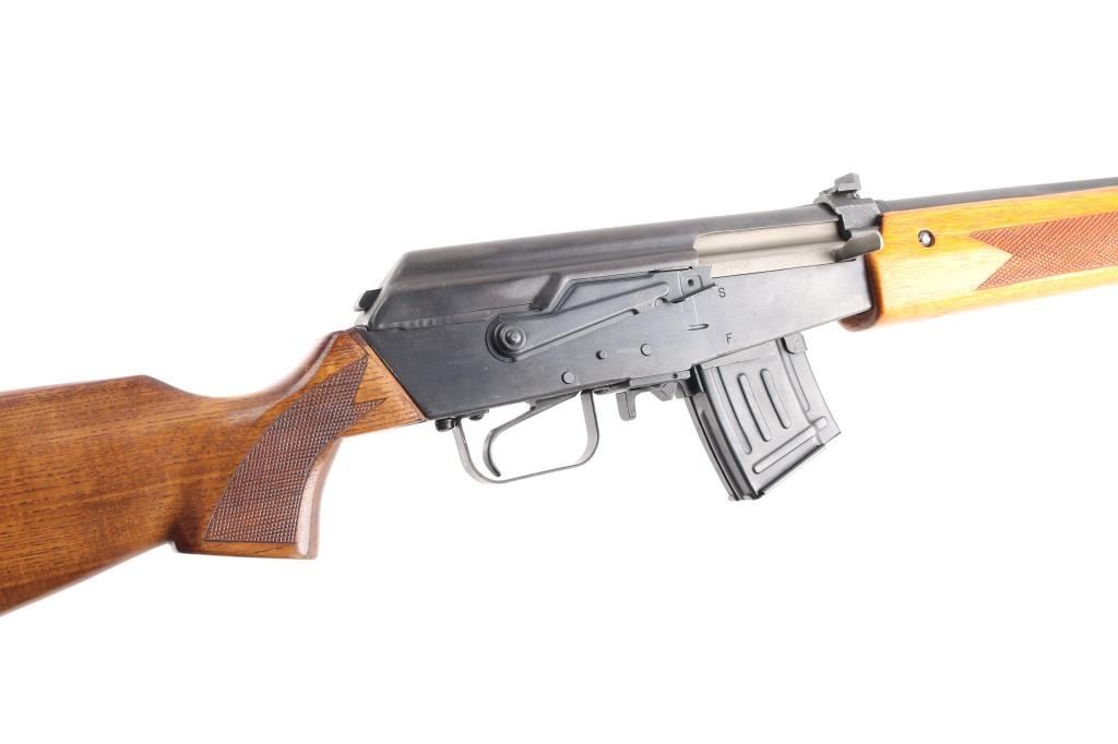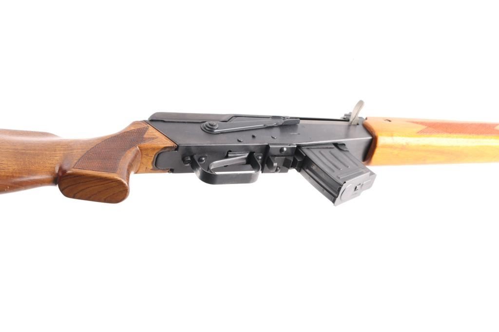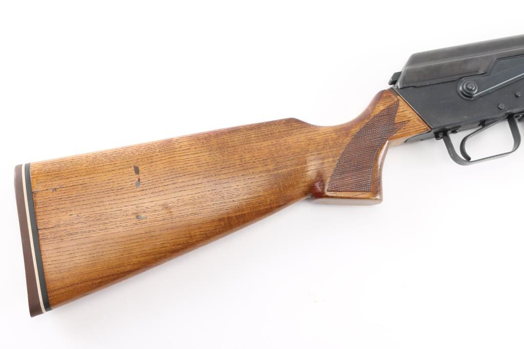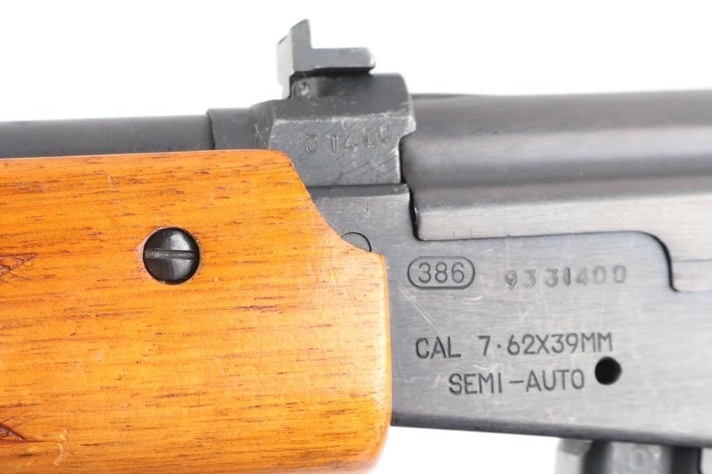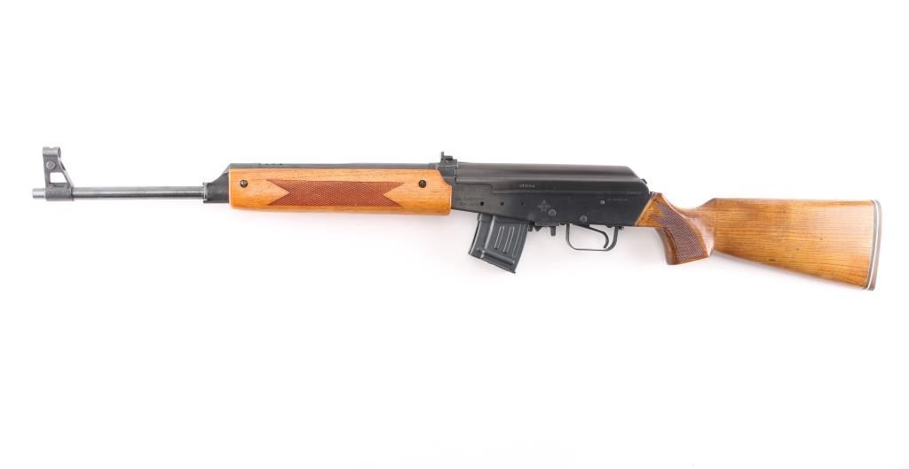 Milled Chinese copy of the Valmet Hunter semi-automatic sporting rifle, manufactured in China with factory 386 marking, imported by ICA, Billerica, MA.. Features Kalashnikov type operating system, approx 20" barrel, military type adjustable sights with flip notch rear, front sling bar on gas block, wood sporter stock with checkered panels and rubber recoil pad. Hard chrome plated bore is excellent. Retains over 94% blue with edge losses, minor scratches and handling marks. Stock is in very good condition. Observed numbers match. One 10 rd magazine (accepts standard AK type mags).Condition is NRA Excellent. Modern Firearm.