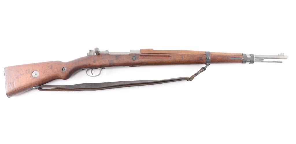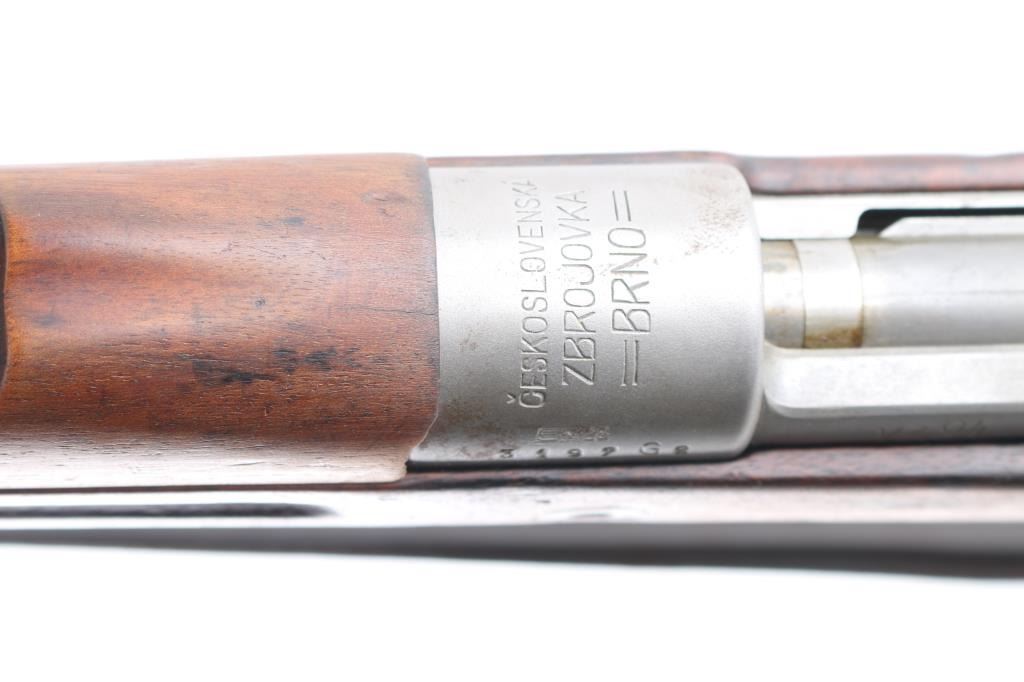 Czechoslovakian military rifle chambered for the 8x57mm Mauser cartridge. Features 23.5" barrel, matte gray finish including the bolt, straight bolt handle, cleaning rod, bayonet lug, dovetail sight base, missing the sight blade, missing the tangent rear sight, manual safety, sling swivels on bottom and left side, smooth wood handguard & stock with grasping grooves, smooth metal buttplate. Mismatched bolt and stock. Bore is good with strong rifling, lightly frosted throughout, needs cleaning. Gray finish is very good. Stock is good/sound with the usual ding/dents. Correct period sling attached.NRA Condition-Fair/Sights. C&R Firearm.