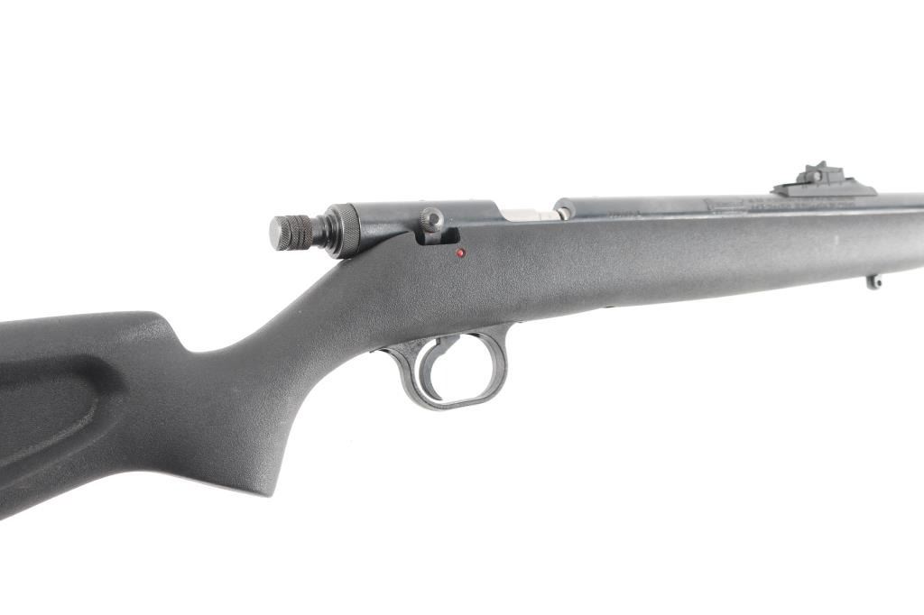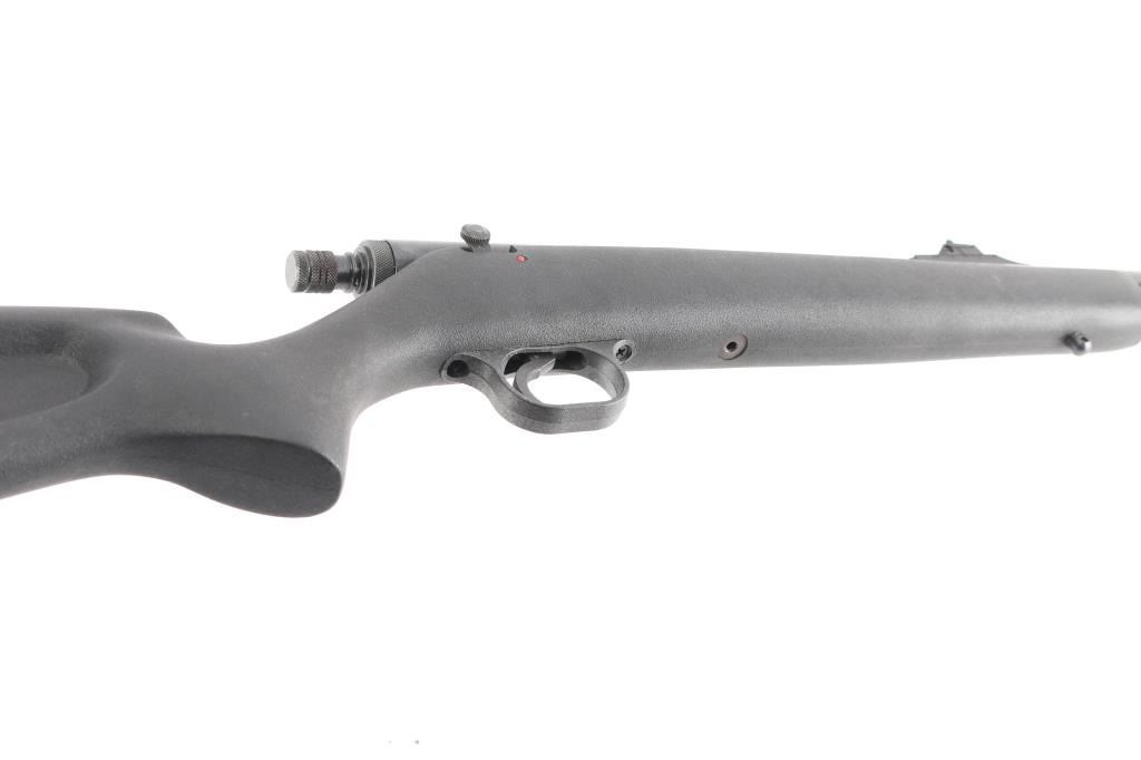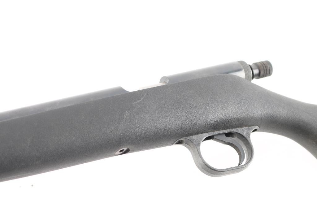 Modern, .50 caliber muzzle loading rifle utilizing a straight pull style action. On Field & Streams 50 Best Guns Ever Made list. Features a blued finish, 23" heavy barrel, blade/bead front, adjustable u-notch rear sights, drilled & tapped receiver, manual safety, serrated trigger, ram rod, swivel studs and black synthetic pistol grip shoulder stock with recoil pad. Rifle shows little to no wear. Action is smooth, bore is excellent and synthetic stock is fine. Condition is NRA Excellent. Antique Firearm