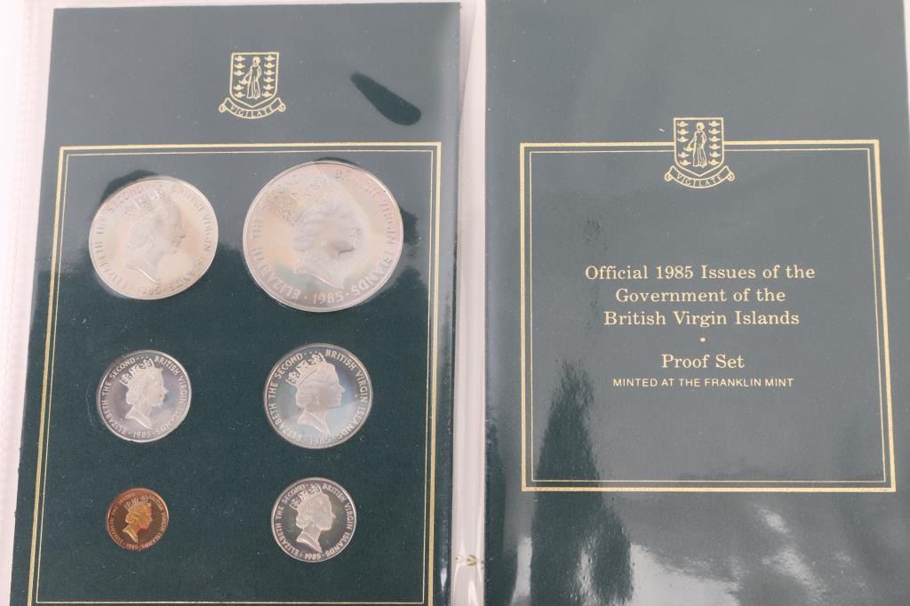 (1)1985 (1)1986 (1)1988 (1)1988 $10 silver coin (1)1988 $5 Alum/bronz coin (1)1988 $2 silver coin. Also (1)1985 British Virgin Islands Proof minted at the Franklin Mint. All are in OGP w/COAs.