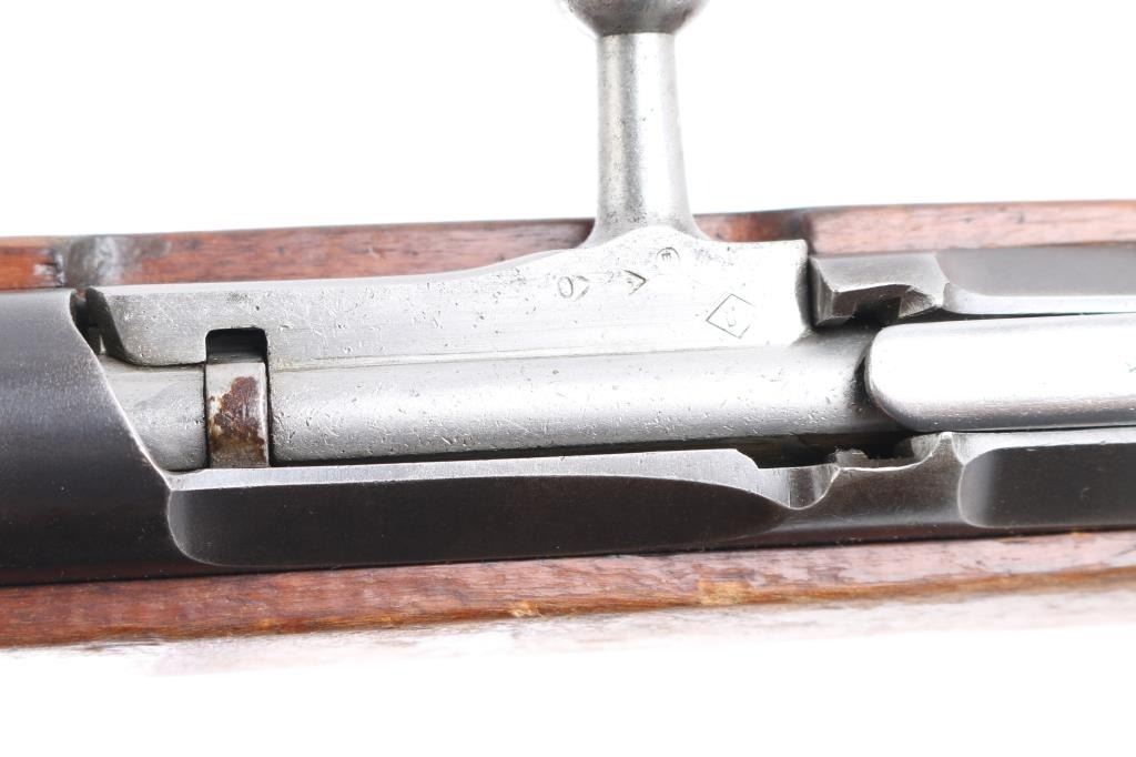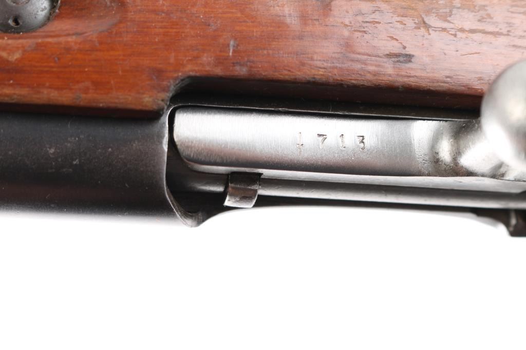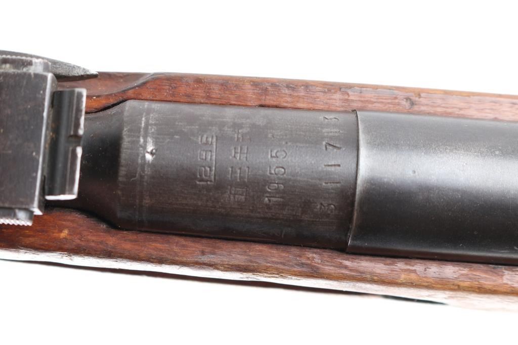 Sn: 1311713. Chinese military bolt action rifle manufactured circa 1955.1 at the State Factory at Jianshe arsenal, No. 296. Same as Russian M44. Features 20" barrel, post front sight inside protective ring, tangent style rear sight, manual safety, straight bolt handle, sling slots, no cleaning rod, folding spike bayonet. Bore is dark, rifling present, dark frosting in the grooves. Blue has dulled a little, some handling/edge wear. Bolt assembly is polished. Wood is good/sound condition, with scratches & dents. There is some gouges on the right forearm. Matching serial number on barrel shank, and magazine & bolt, no other SNs observed. Condition is NRA Good+ C&R Firearm.