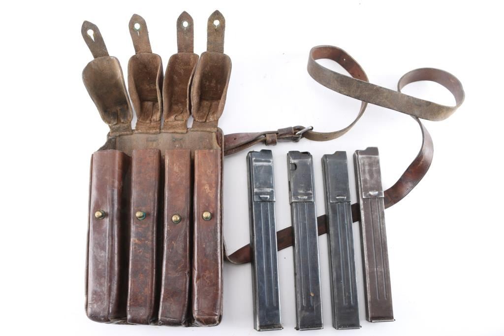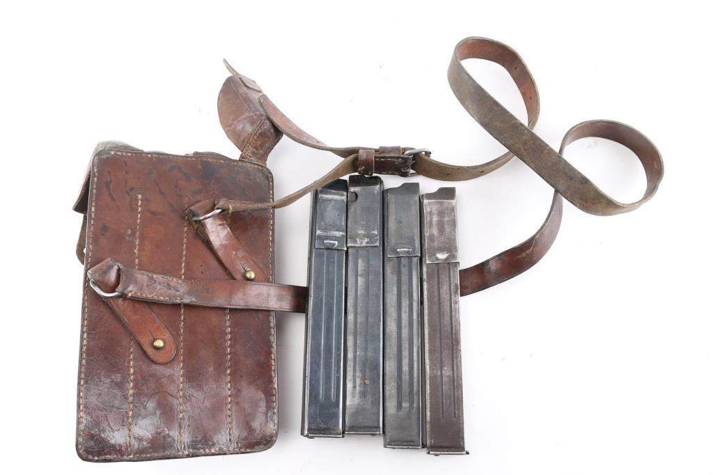 Includes a leather pouch w/ strap, (4) SMG magazines, marked "MP38u40. Years of manufacture 1938, 1941, and 1943.