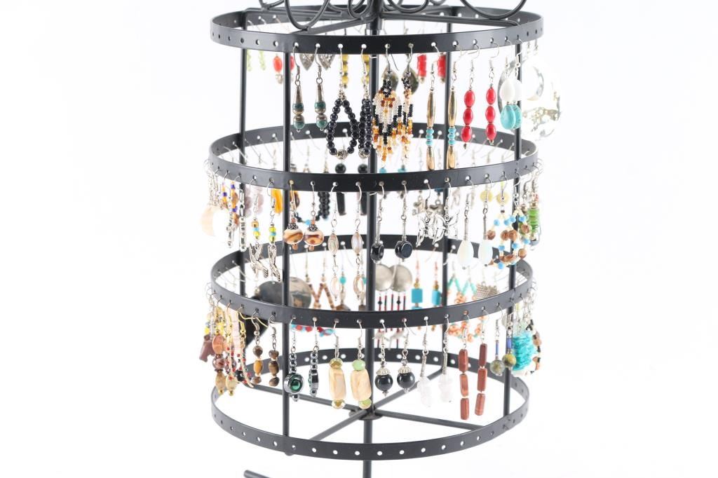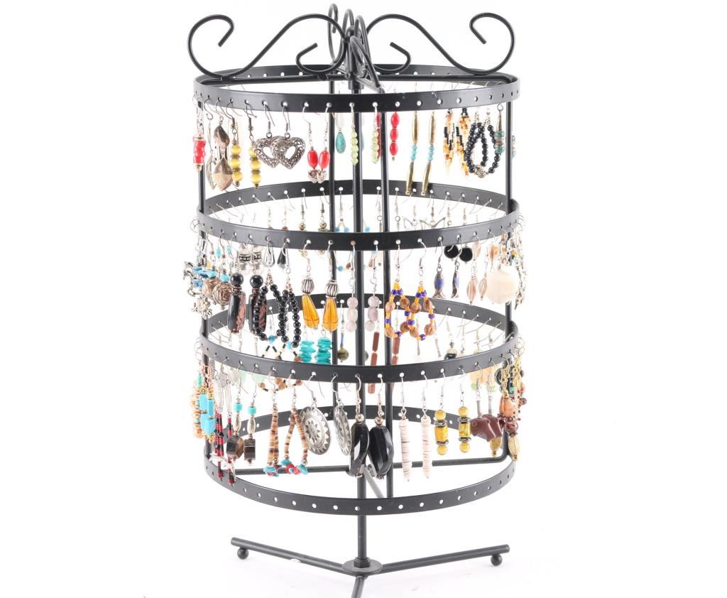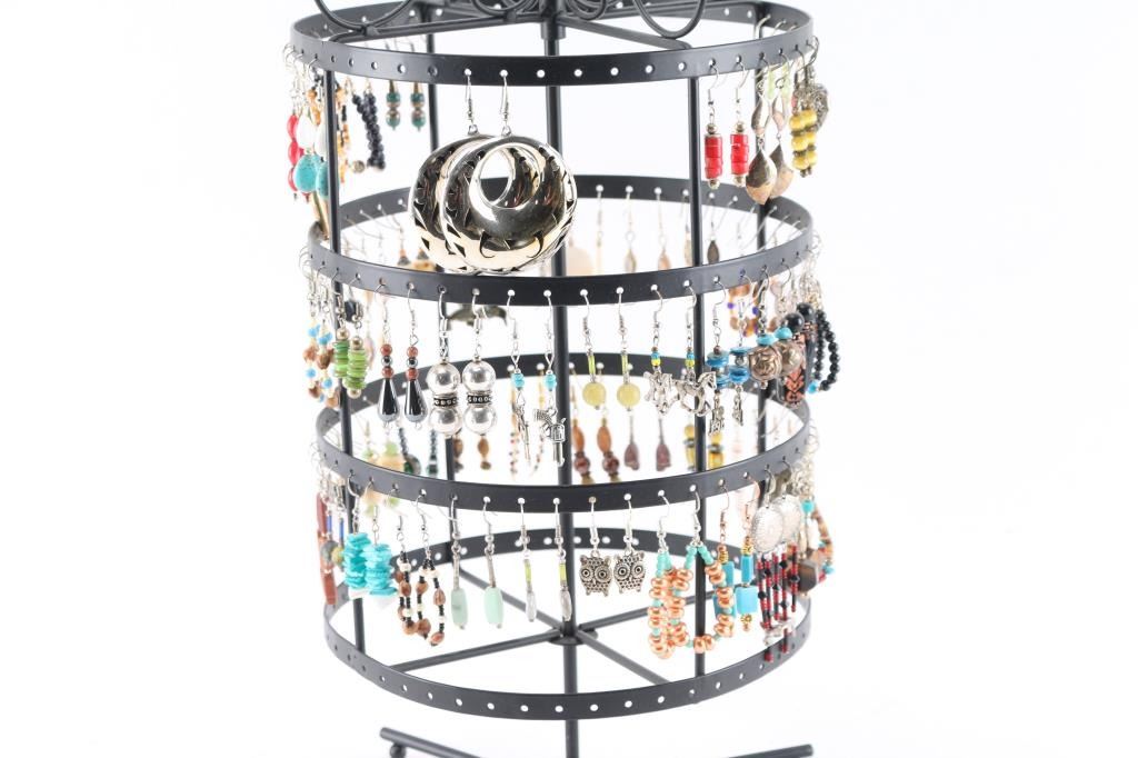 All different styles and designs of fun earrings.