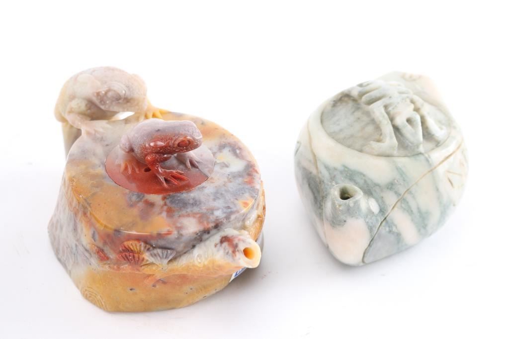 Two in satin boxes. One is made of jade.