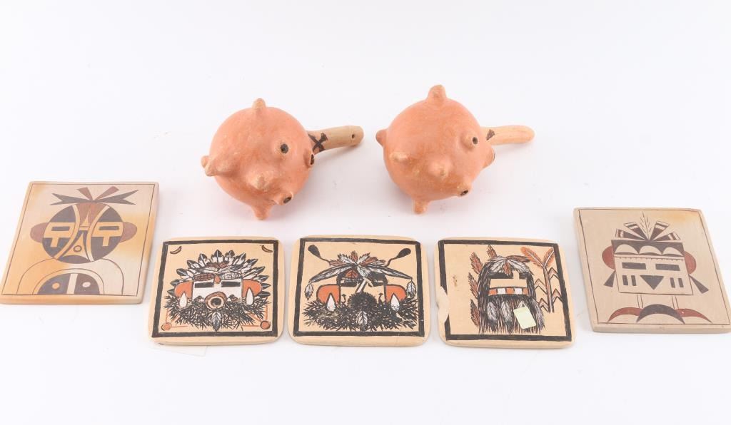 Lot 1203 Lot of Hopi Tiles and Mudhead Rattles.