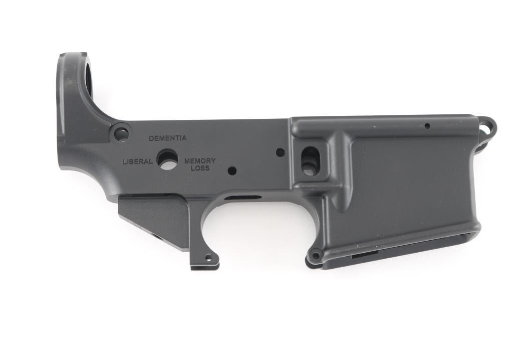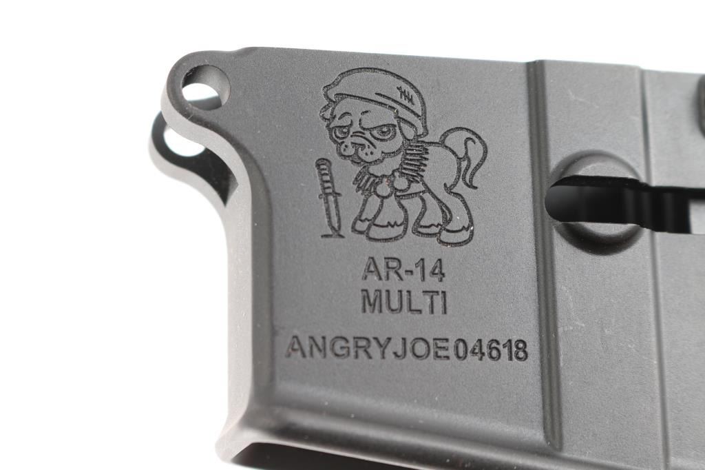 SN: Angry Joe 04618. Stripped lower receiver only for AR15 type rifle. Laser etching depicts President Joe Biden as a "Dog-faced Pony Soldier" with safety settings of "Wud he say" & "Fulla Sh*t". Unused, no signs of handling with a matte black hardcoat anodized finish. Pristine. Condition is NRA Perfect.*** Modern Firearm ***