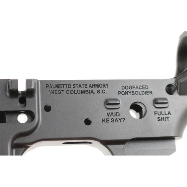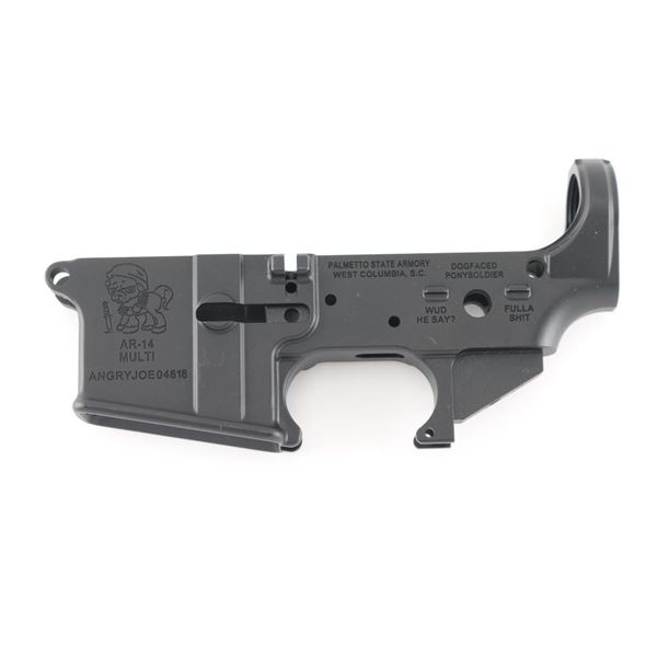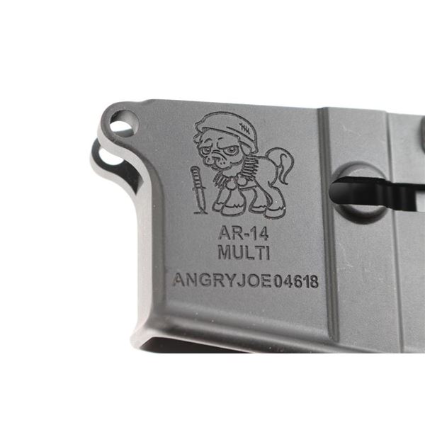 SN: Angry Joe 04618. Stripped lower receiver only for AR15 type rifle. Laser etching depicts President Joe Biden as a "Dog-faced Pony Soldier" with safety settings of "Wud he say" & "Fulla Sh*t". Unused, no signs of handling with a matte black hardcoat anodized finish. Pristine. Condition is NRA Perfect.*** Modern Firearm ***