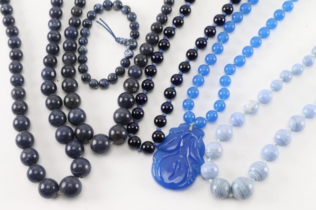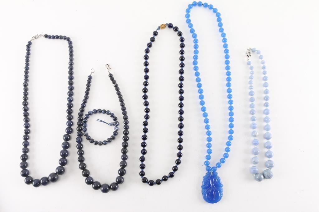 5 lapis beaded necklaces measuring 9" to 15" from drop. And one beaded lapis bracelet.