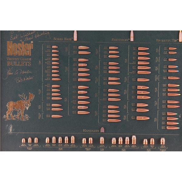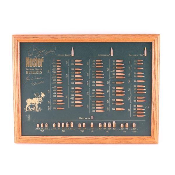 Inscribed "To Eric, Best wishes & good hunting. John A. Nosler and Bob Nosler". Measures 36"H x 20"W.