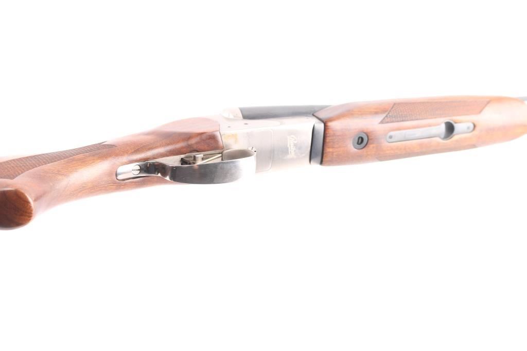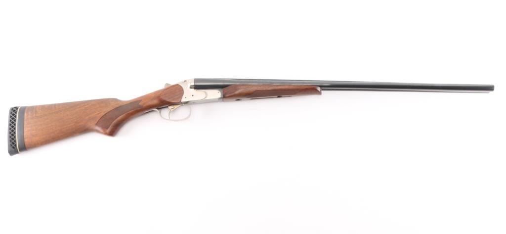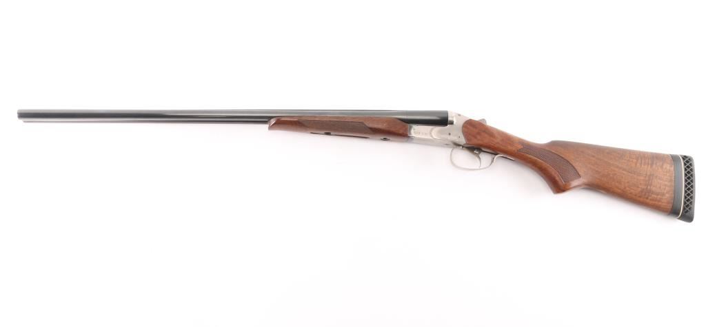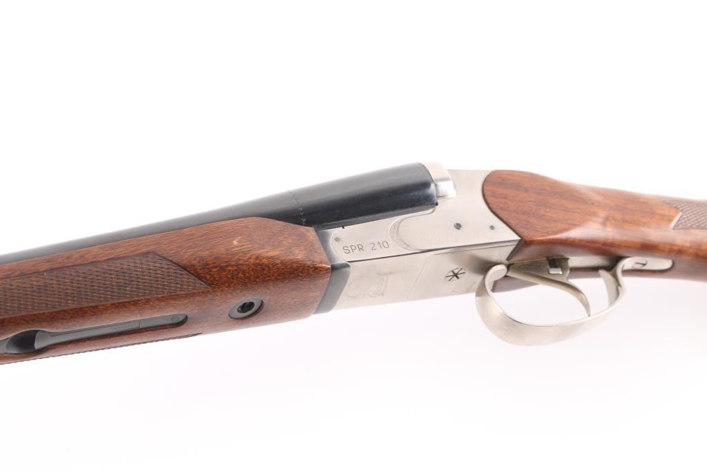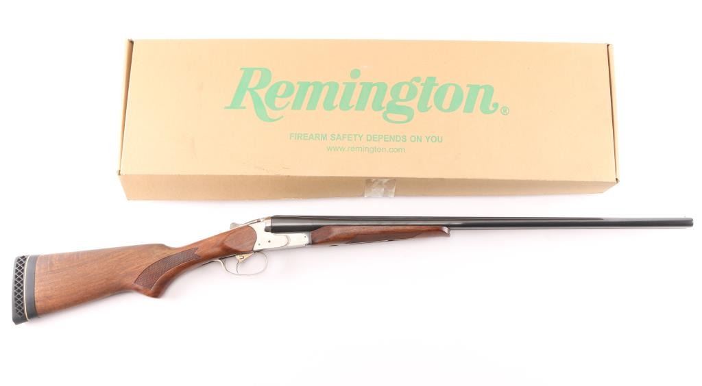 Sn: 0712088R. Remington SPR 210 make in Russia by Baikal, imported by USSG. Side x Side, .28 gauge, 32 3/4" chambers, 26 1/2" matte rib barrels with fixed Cyl chokes, Single selective trigger, ejectors top lever, sliding tang safety, nickel receiver and triggerguard. Checkered wood stock and forearm, vented rubber recoil pad. Bores are excellent/bright, barrels lock-up tight, finishes are excellent, wood is overall excellent except on the rear comb there is a 1" patch of what appears to be gray wood filler. Comes with the original factory box with manual, document and a matching Piece of wood if you decided to repair the comb.NRA Condition-Very Good+. Modern Firearm.