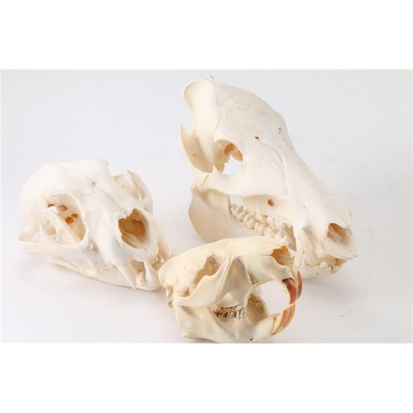 Includes skulls of a ram, beaver, bobcat, javelina, cow, and water buffalo.
