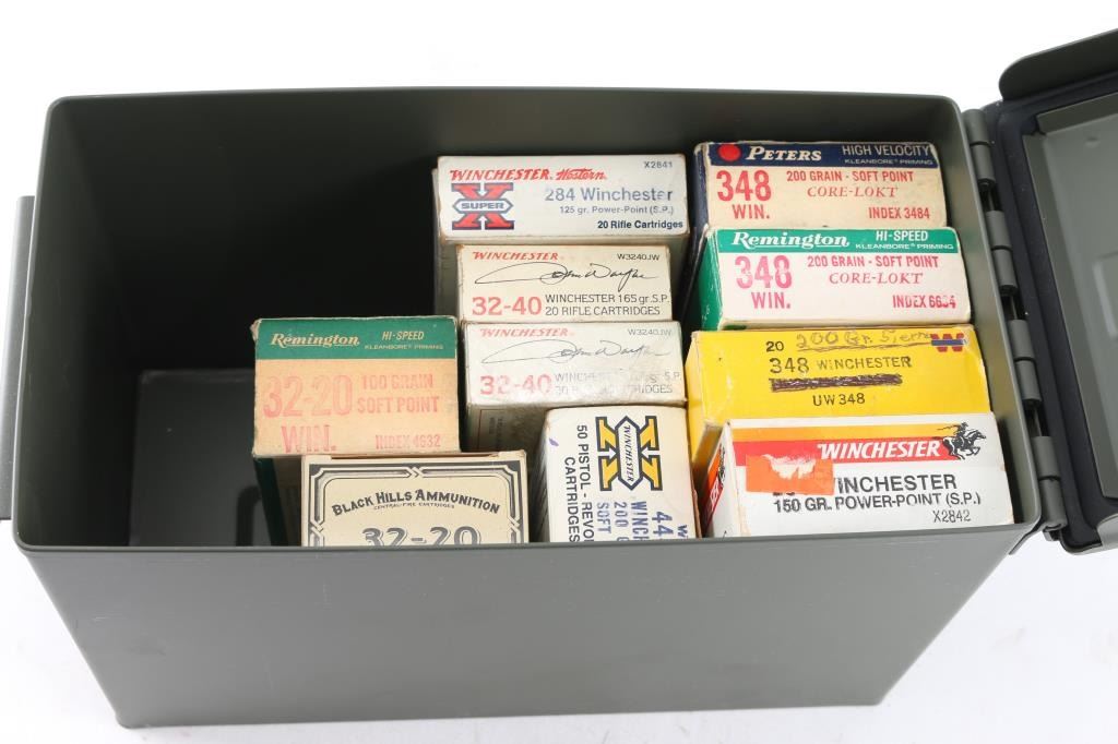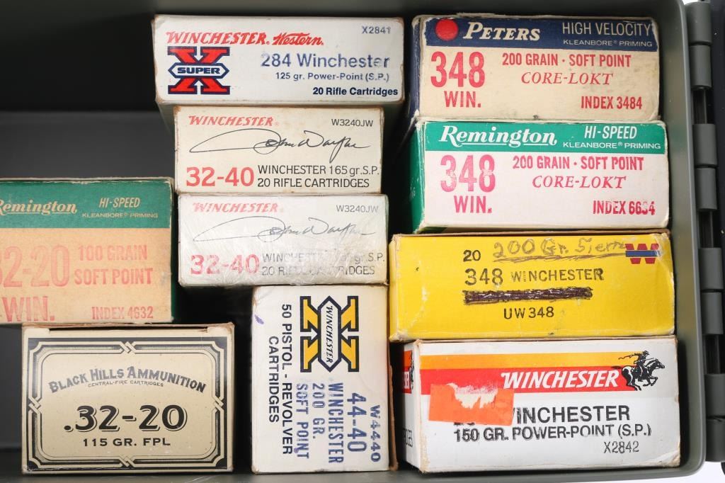 Includes: 39rds of .284 WIN ammunition; 60rds of .348 WIN ammunition; 100rds of .32-40 ammunition; 50rds of .44-40 ammunition. COUNTS ARE APPROXIMATE (+/-)