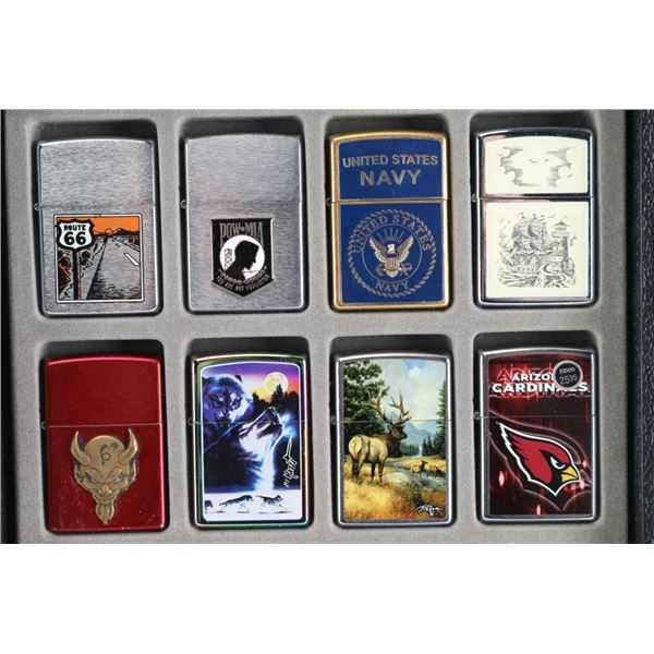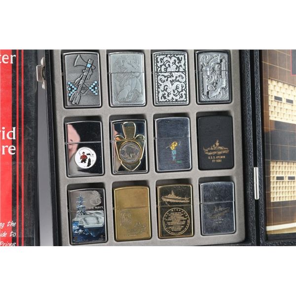 Includes: (3) Books - Zippo Lighters Field Guide, Zippo - The Great American Lighter, Images of America - Zippo Manufacturing Company. (24) Zippo lighters - POW, Navy, Route 66, AZ Cardinals, Buffalo Nickel, S&W, and more. (1) Zippo hand warmer.