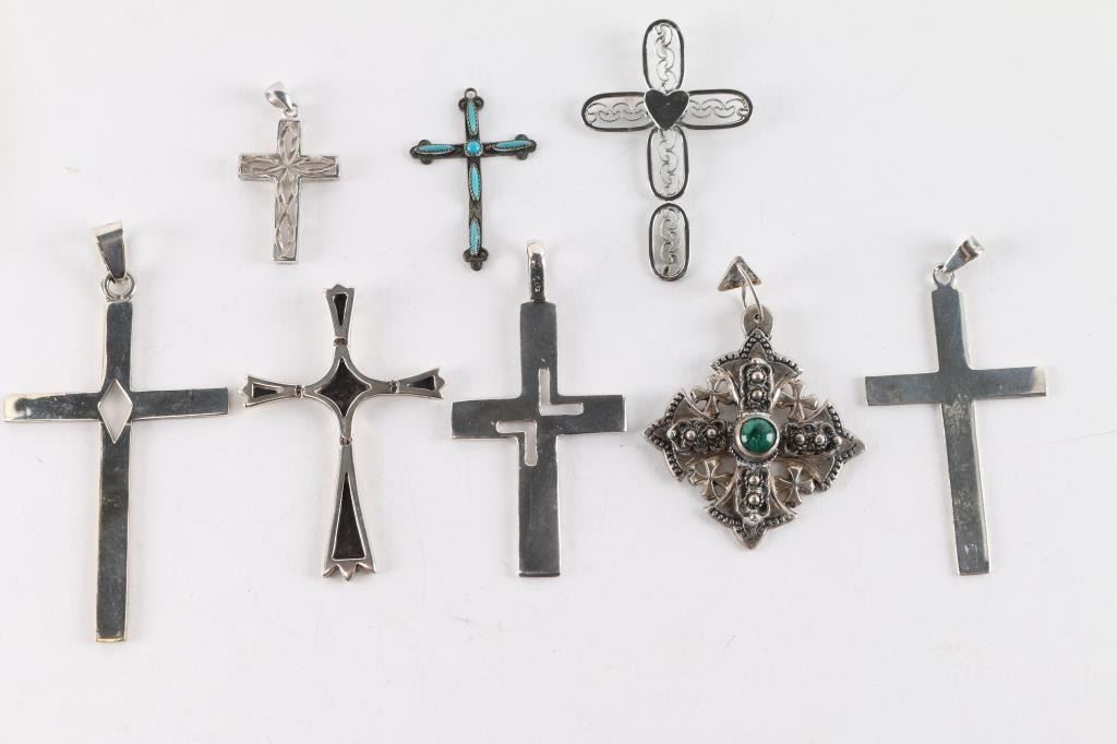 Lot 1343 Lot of 8 Sterling Cross Pendants.