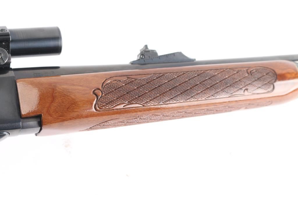 Semiautomatic rifle manufactured circa 2014. Features 22" barrel, ramp front sight with beaded blade, adjustable rear sight, manual safety, blued finish, wood stock with impressed checkering at wrist & forend, factory buttplate and grip cap with white spacers. Mounts a good condition Weaver K2.5-1 Rifle Scope, fine crosshair, clear view. Bore is excellent/bright. Retains 99% blued finish. Wood is nearly perfect with few minor scratches. One magazine. NRA Condition-Excellent. Modern Firearm.