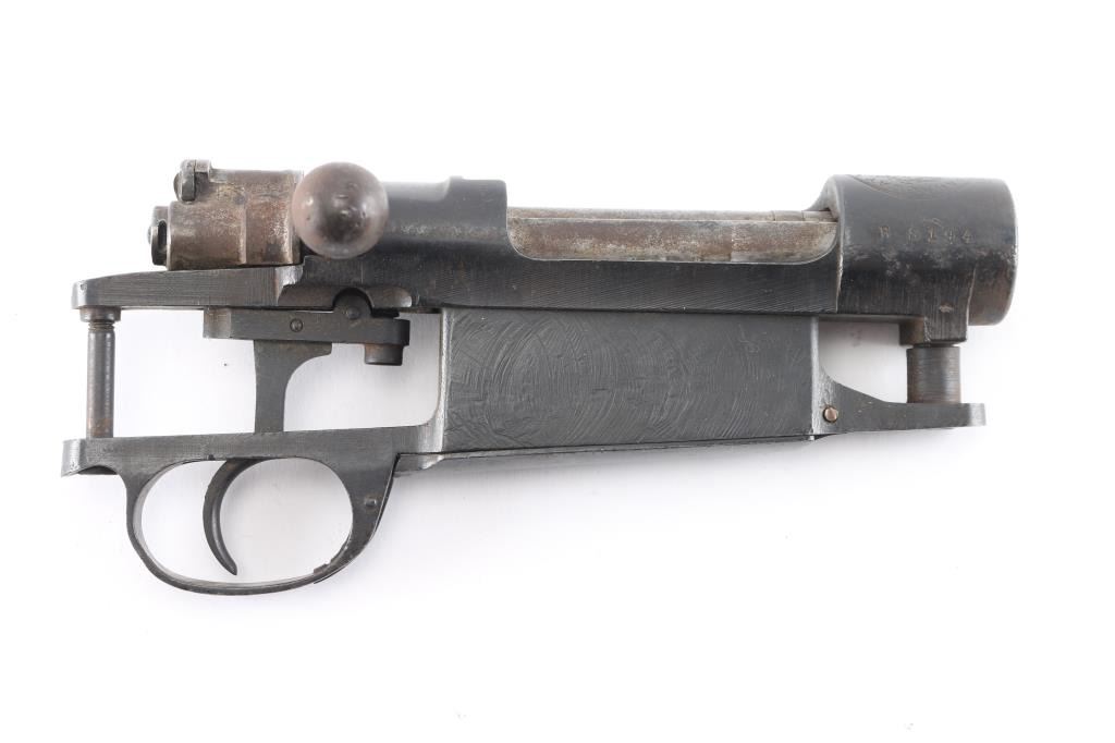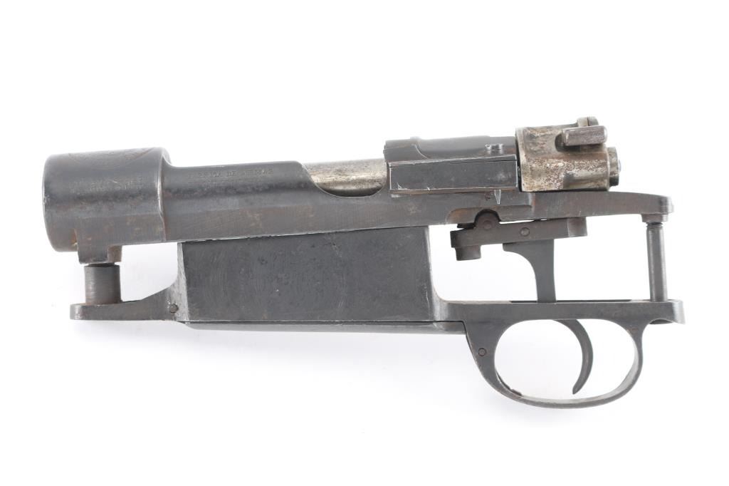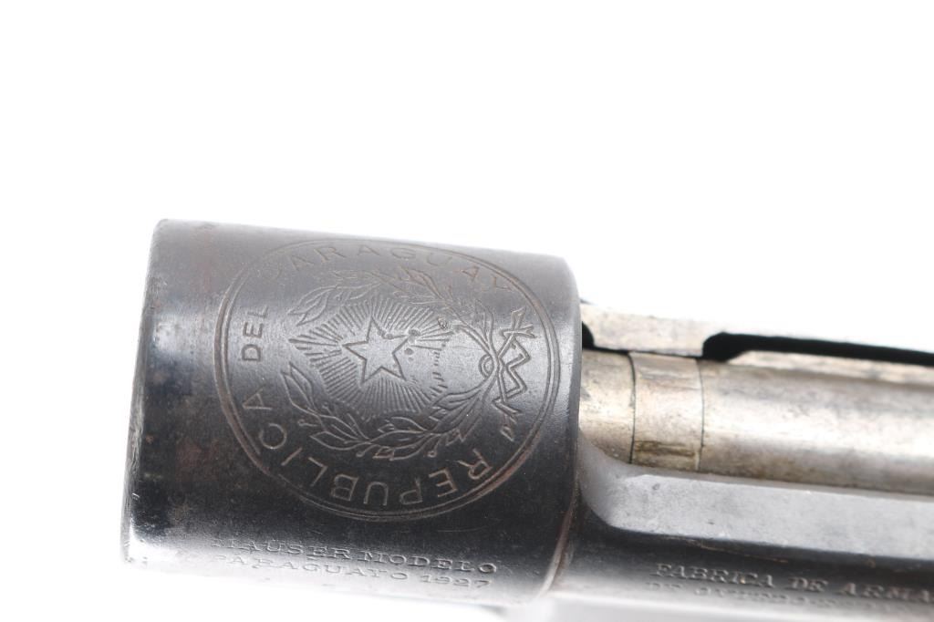 Rare Paraguayan Oviedo Model 1927 Mauser rifle action. Paraguayan contract with Oviedo of Spain. Repulica del Paraguay crest on receiver. complete bolt, bottom metal, trigger. Hinged floorplate. Serial number matched on chamber, bolt, mismatched floorplate. Bolt action works well. Polished bolt has scattered brown patina, needs a good cleaning. NRA condition-Good. (Action Only) Modern Firearm.