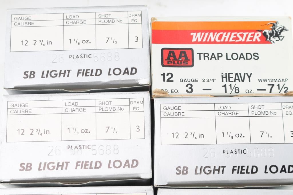 Approx. 175 rounds of 12 Gauge factory new ammunition. Approx. 100 rds of S&B 7 1/2 shot, 2 3/4"; approx. 50 rds of Federal 2 3/4" & approx. 25 rds of Winchester 7 1/2 shot, 2 3/4". All in factory boxes.