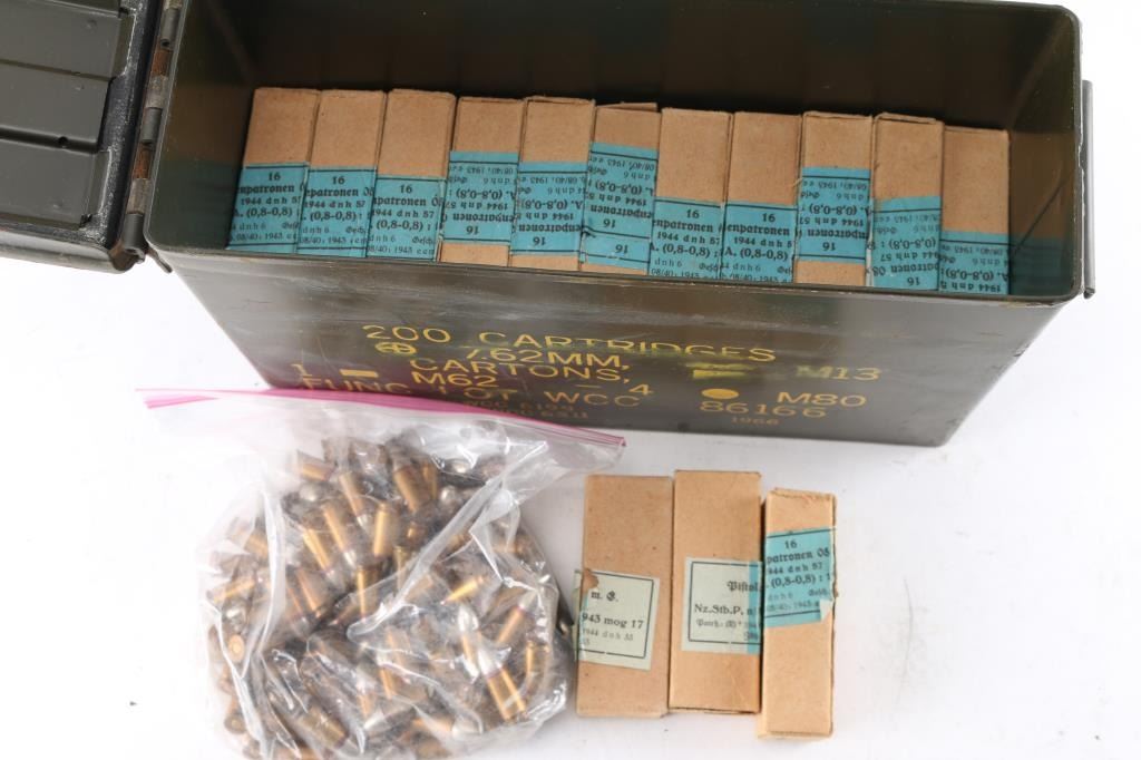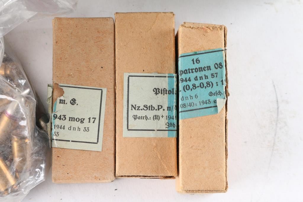 Approx. 656 total. Approximately 576rds (36 boxes) of German 9mm Luger and approx. 80rds of reloads. ***COUNTS ARE APPROXIMATE (+/-)***