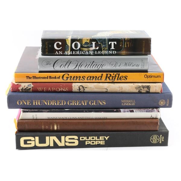Includes: Gunmakers of Indiana by Albert Lindert; Maine Made Guns and Their Makers; The Colt Heritage; Colt An American Legend; Guns by Dudley Pope; Weapons, A Pictorial History by Edwin Tunis; The Illustrated Book of Guns and Rifles; One Hundred Great Guns.