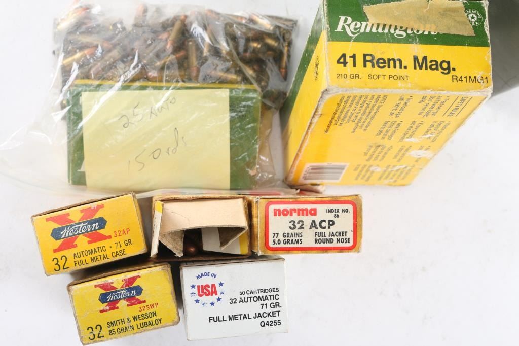 Includes: 30rds of .41MAG; 190rds of .32 AUTO; 150rds of .25 AUTO. COUNTS ARE APPROXIMATE (+/-)