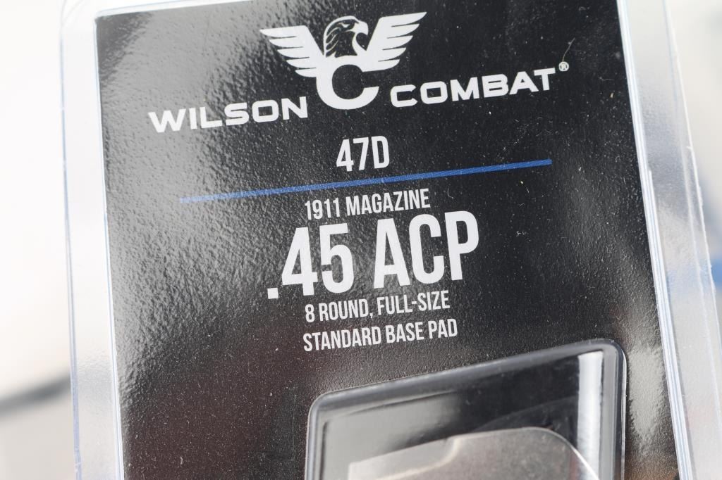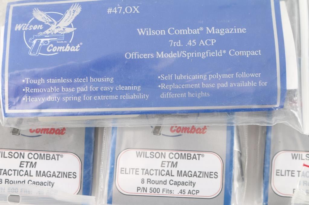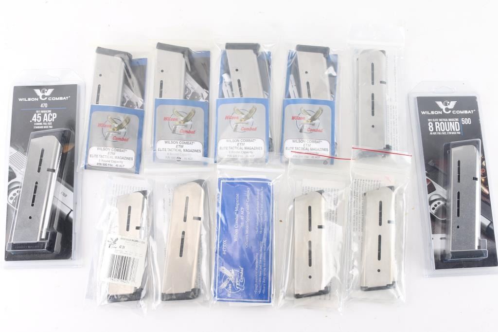 12 total. Wilson Combat 45 ACP, 8 - 8rd & 4 - 7rd stainless steel magazines w/plastic base pads. Unused in individual factory plastic zip lock bags. All in very good condition.
