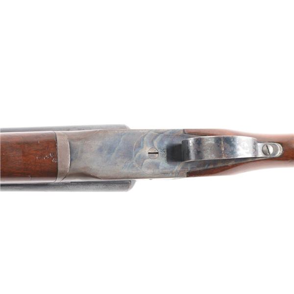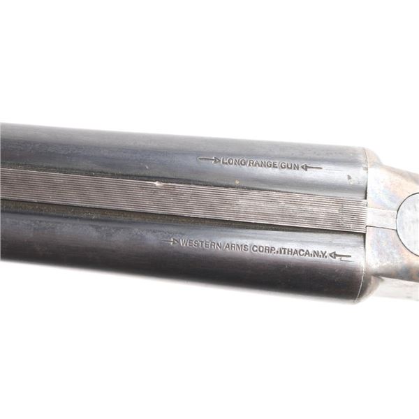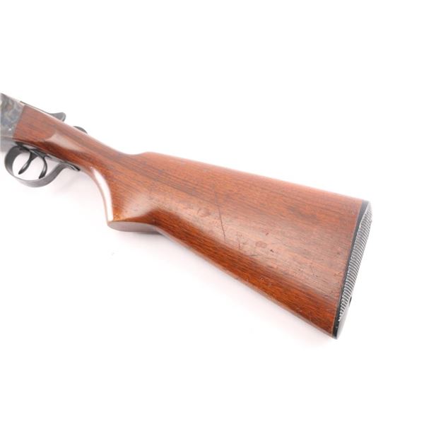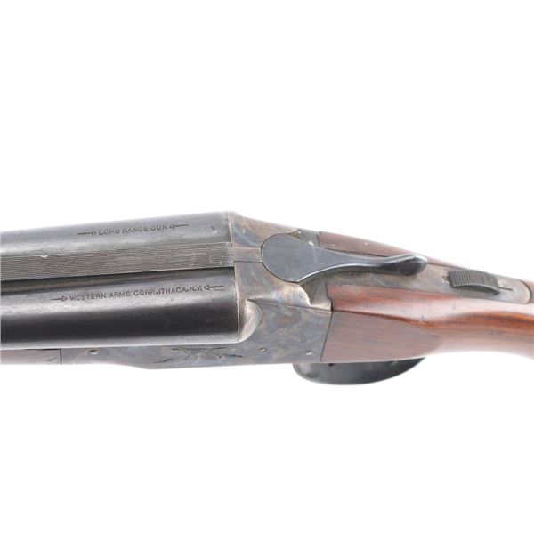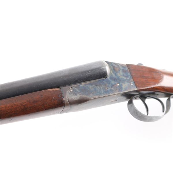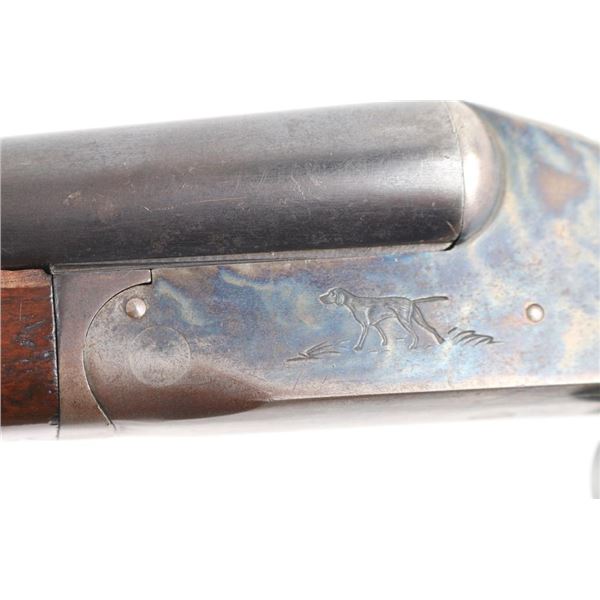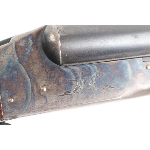 #32341.Vintage double barrel side-by-side shotgun chambered for 2 3/4" 12 gauge shells, circa 1929-1939. Features a blued finish, 28" barrels with a raised solid rib, single extractor, bead front sight, double triggers, sliding tang safety, pointers engraved on both sides of the receiver, checkered top lever, smooth walnut forend and pistol grip shoulder stop with back hard rubber buttplate. Shotgun retains approximately 85% of its finish with muzzle wear/minor scratches. case color receiver is mostly all there with handllng wear on the edges. Action is sound, bores are excellent and refinished wood stocks are very good/sound with minor scratches/dings. There is some scattered light pitting on the triggerguard. Produced 1929-46. LOP-14" to front trigger. Left choke measures CYL, right M.NRA Condition-Good. C&R Firearm.