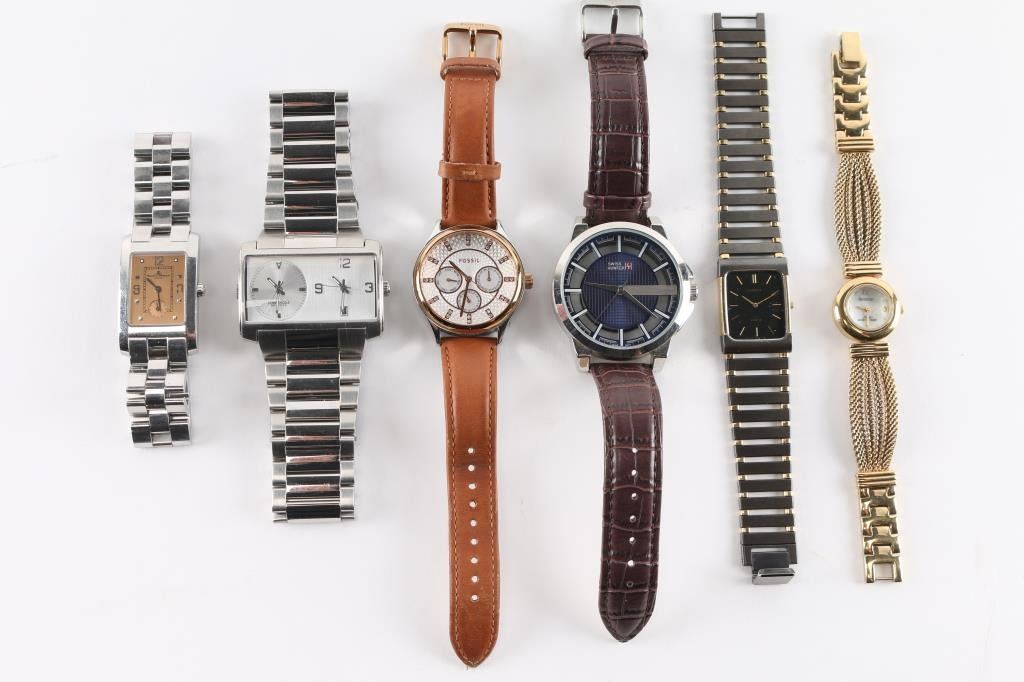 Includes:- Kenneth Cole Dual Time, Lassale,Baume & Mercer, Swiss Hunter, Fossil Chronograph, Armitron (womens).