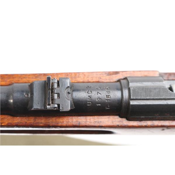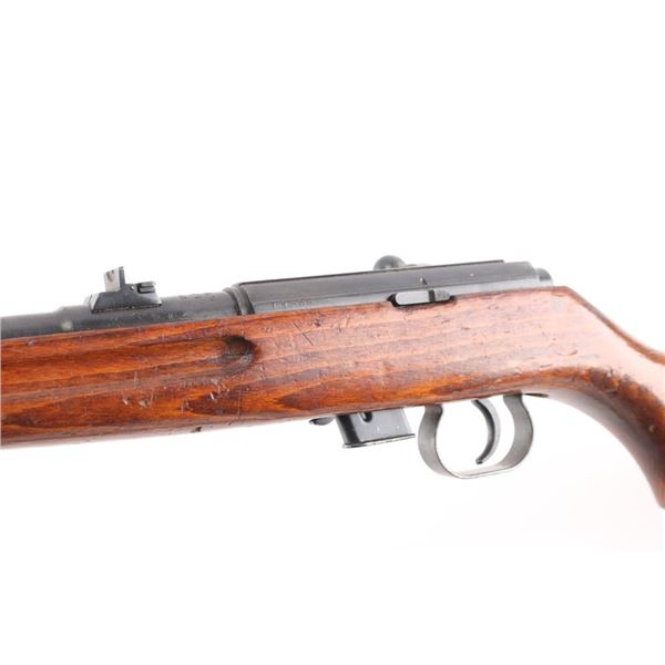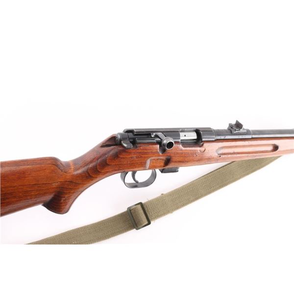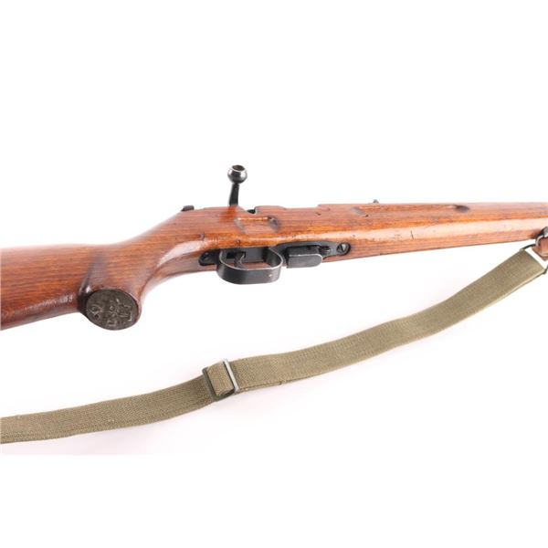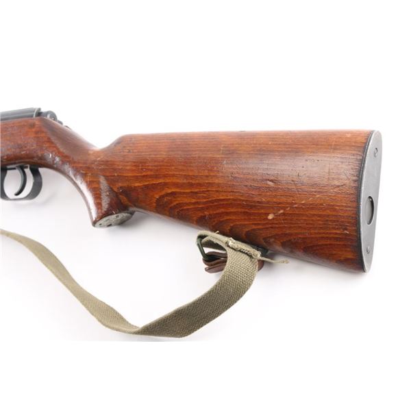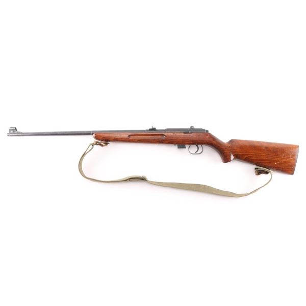 M69 Romanian military magazine fed bolt action training rifle chambered in .22 Long Rifle, manufactured 1970. Features a blued finish, 23.25" tapered barrel, ramped & hooded post front sight adjustable for elevation, dovetailed express style rear sight with one standing & two folding leaves, integral scope rail cut into the receiver, smooth trigger, two-position safety on the rear of the bolt, turned down bolt handle, detachable 5 round magazine, and smooth wood semi-pistol grip shoulder stock with finger grooves in the forend, sling swivel studs & trapdoor metal buttplate with cleaning gear. Matching serial numbers are found on the receiver and bolt. Rifle retains approximately 90% bluing showing scattered wear/scratches. Action is sound, the bore is pristine, and the wood stock is very good with blemishes. Correct green web sling attached.NRA Condition-Very Good. C&R Firearm.