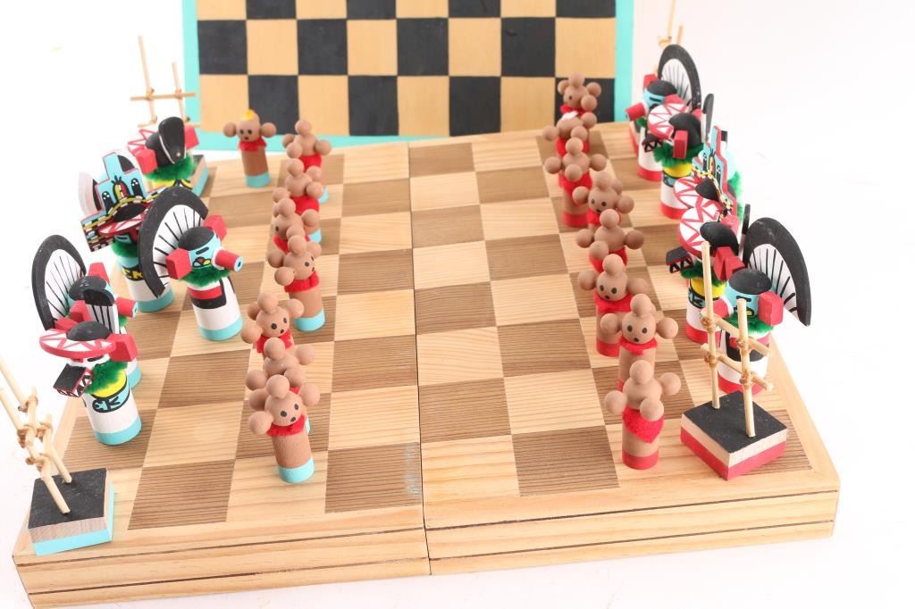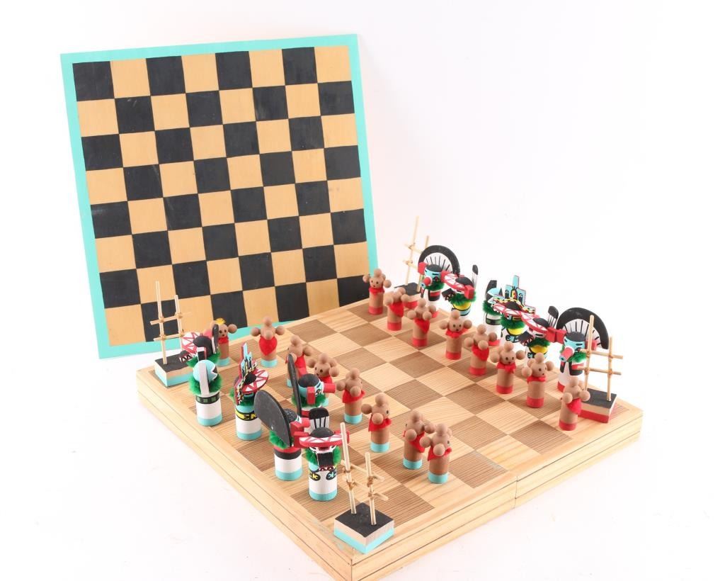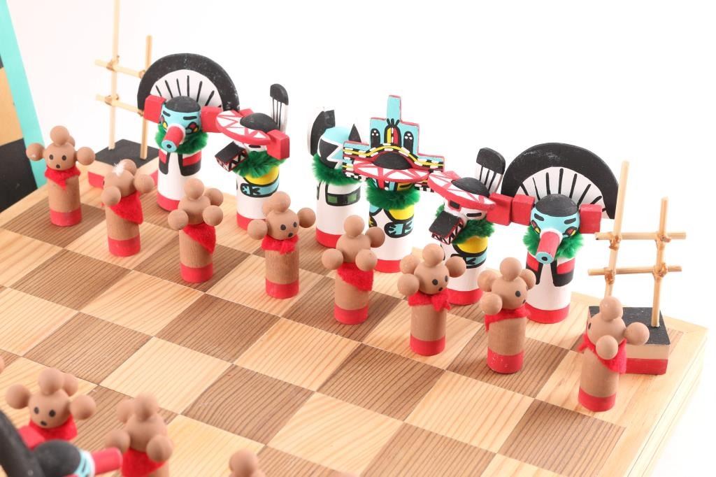 All With Kachina Game Pieces That Are Made Out Of Wood And Hand Painted.