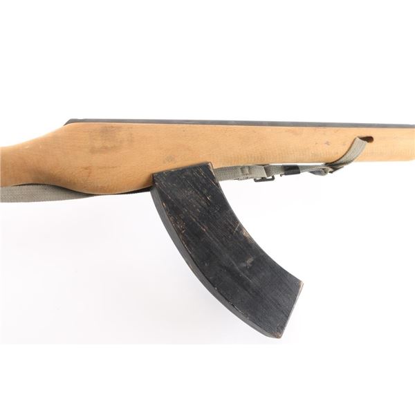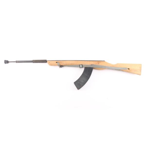 Übungsgewehr Modell 4.853. East German bayonet training rifle, believed to have been designated the M85, resembles the AK47 rifle (East German MPiK). Comes with a spring loaded bayonet with bulbous rubber tip and grooved grips. The ¨bayonet¨can be removed from the rifle for hand to hand training. Note that the rifle does not have pistol grip since the right hand did not grasp the pistol grip during bayonet use. Very good condition with the correct issue sling.