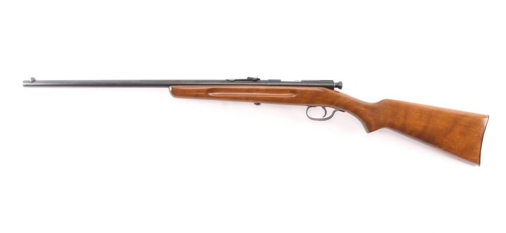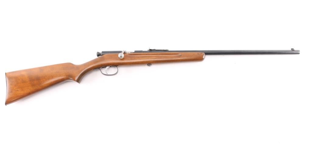 The Springfield Meteor Model 52A was manufactured by the Springfield Armory between the late 1930s and early 1940s. Single-shot, bolt action, 22" barrel with blade/bead front and sporting rear sights. walnut stock with grasping grooves, smooth steel buttplate. Bore is excellent/bright, action is smooth, wood and blue are excellent. Great starter rifle.NRA Condition-Excellent. C&R Firearm.