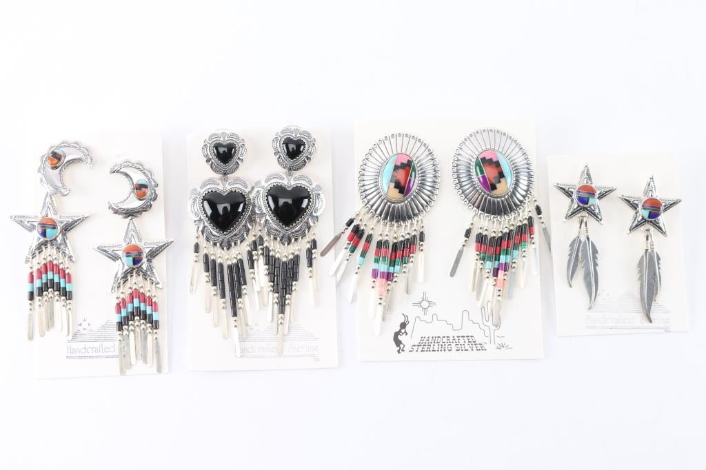 Lot 1586 Lot of 4 Sterling Inlay Earrings.