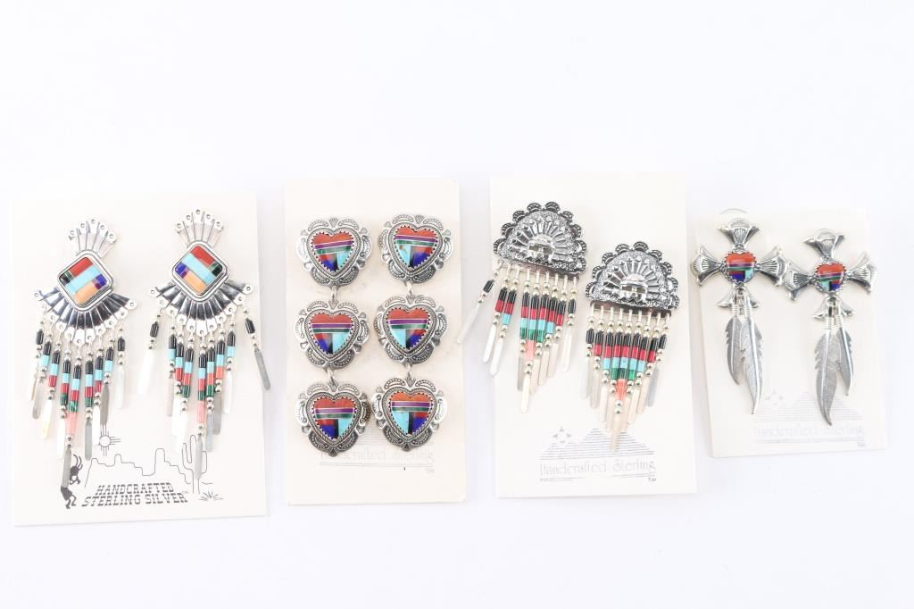 Lot 1589 Lot of 4 Sterling Inlay Earrings.