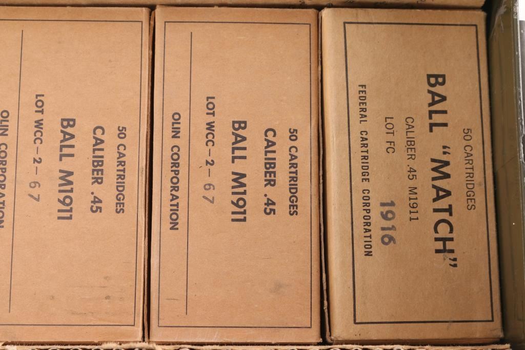 Approx. 750 rounds of 45 ACP factory new ammunition. Federal Ball M1911. All in brown factory boxes.