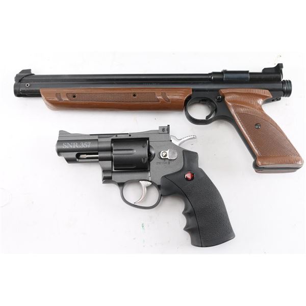 (1) Revolver C02 air pistol, 4.5mm CAL. (1) American Classic air pump pistol, Model 1377, .177 CAL. Includes small range bag w/ BBs and pellets.