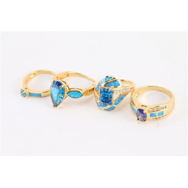 22K gold over sterling silver, with semi-precious stones. Sizes 5 3/4, 6, 6 3/4, and 7.