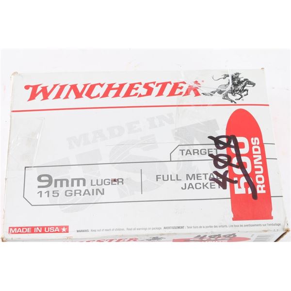Approx. 400 rounds of 9MM factory new ammunition. Winchester 115 Gr. FMJ. In factory boxes.
