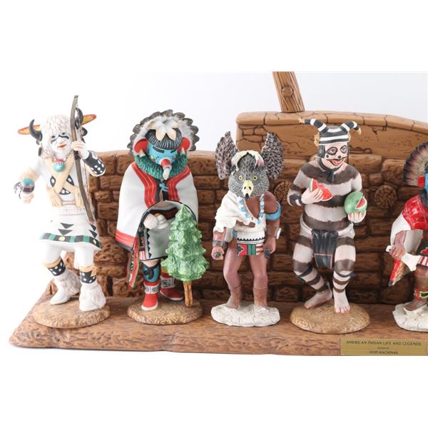 Features 8 figures. Porcelain limited edition and #. The Morning Kachina, The Mudhead, The Clown, The White Buffalo, 4 others which are resin, not porcelain.***Buyer must arrange shipping***