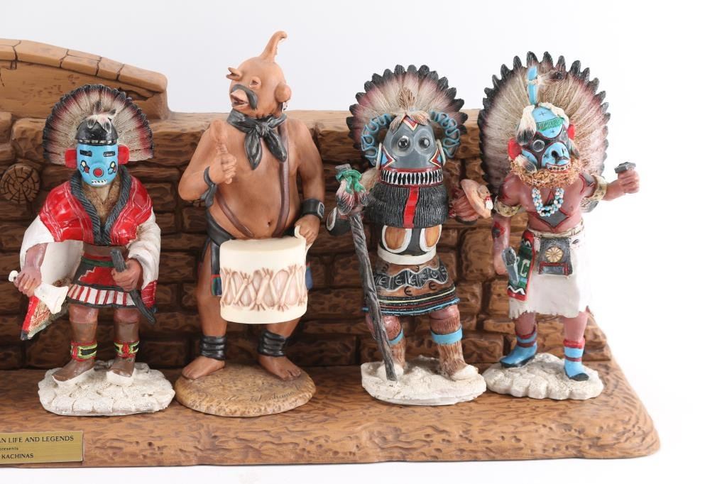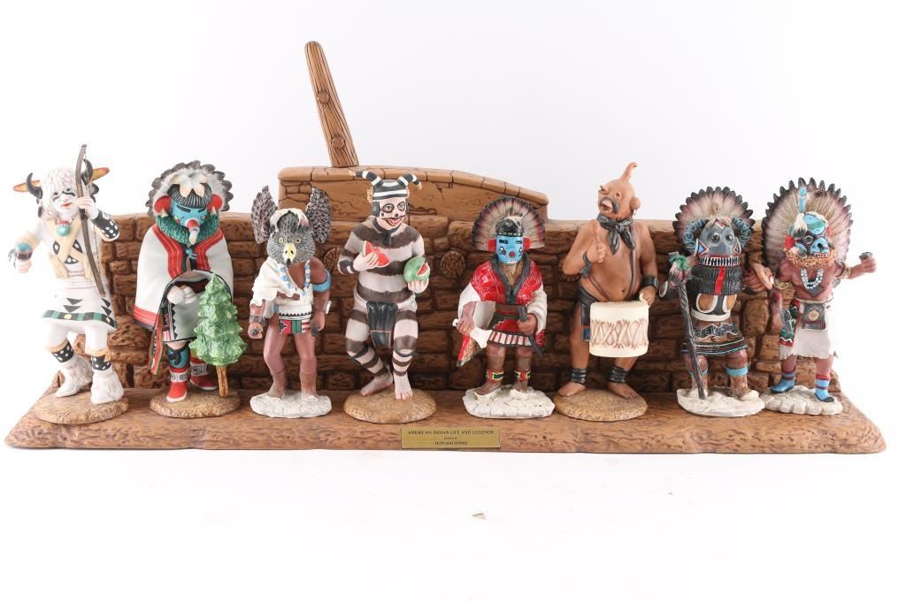 Features 8 figures. Porcelain limited edition and #. The Morning Kachina, The Mudhead, The Clown, The White Buffalo, 4 others which are resin, not porcelain.***Buyer must arrange shipping***