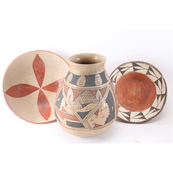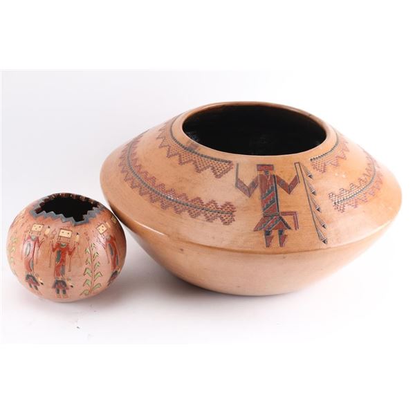 Features 2 bowls and 3 pots. Signed Larry Willie