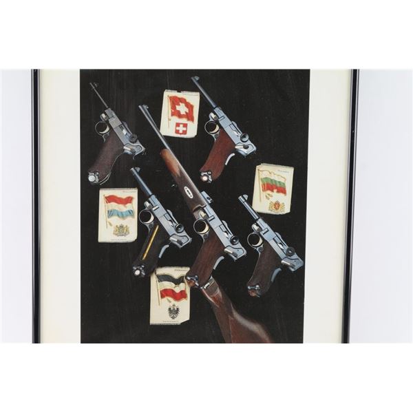 This photograph was first featured on the cover of the book Luger: The Multi-National Pistol by Charles Kenyon Jr. It features 4 Luger pistols from Germany, Holland, Bulgaria and Switzerland. Signed by Paul Goodwin, numbered 333/500. Frame measures 17" x14". Rare