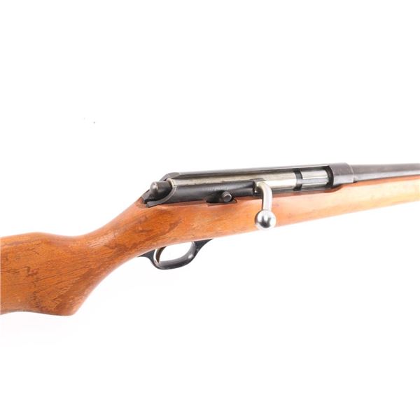 Made by Marlin for the Western Auto supply Company, based on the Marlin Model 59 "Olympic", circa 1959-1965. Single-shot, bolt-action, blue finish, polished bolt, one piece walnut stock with semi pistol grip. 24 1/2" barrel, serrated trigger, plastic triggerguard, manual safety, cocking indicator. Bore is excellent/bright, action is smooth, blue is about 80% with edge/handling wear, wood is sound with no cracks with handling wear, some scuffs and finish loss. >410 Full choke, LOP-12 3/4".NRA Condition-Near Very Good. C&R Firearm.
