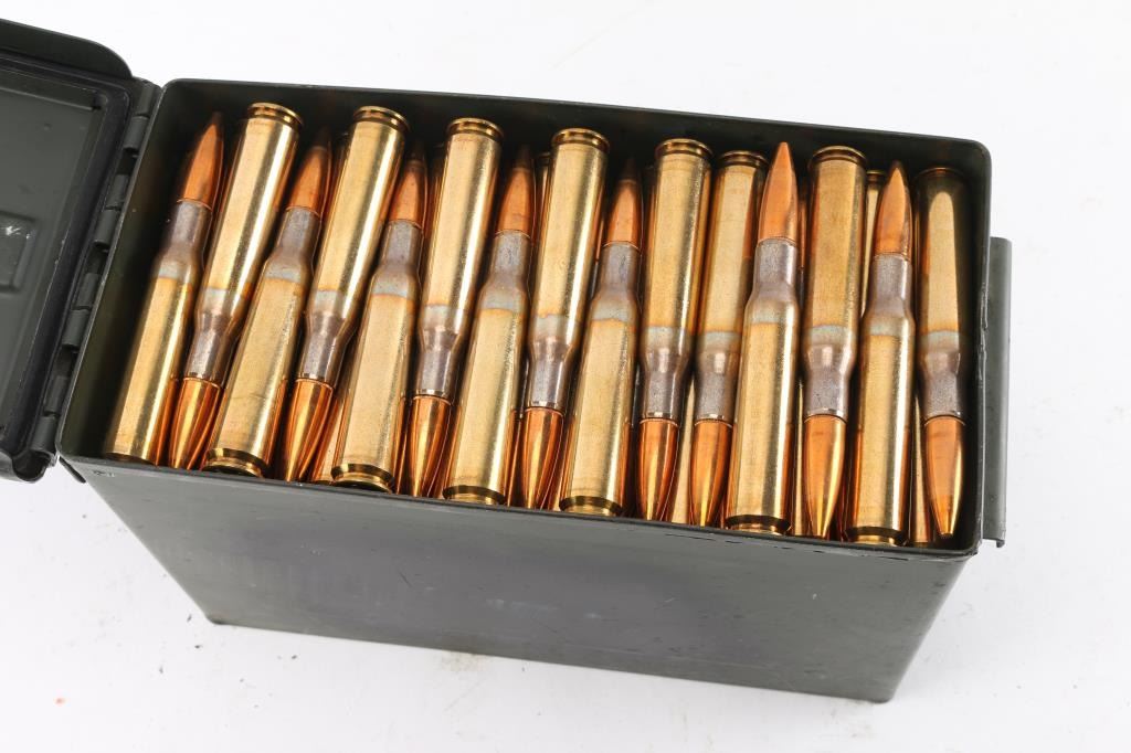 Approx. 150 rounds of factory new ammunition. PMC 660Gr. FMJ-BT. Loose in standard green metal ammo can.