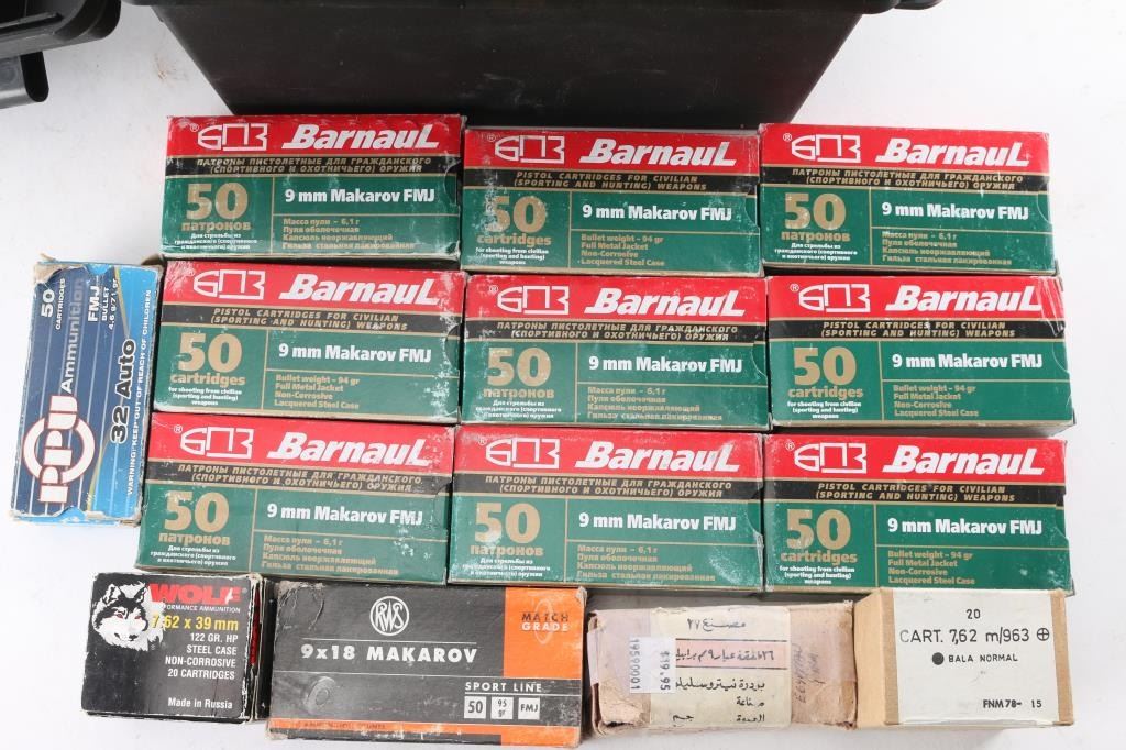 500rds of 9x18 Markarov; 20rds of .32 ACP; 20rds 7.62x51; 20rds of 7.62x39 (Wolf); and 25+rds 9x19 (Egyptian).