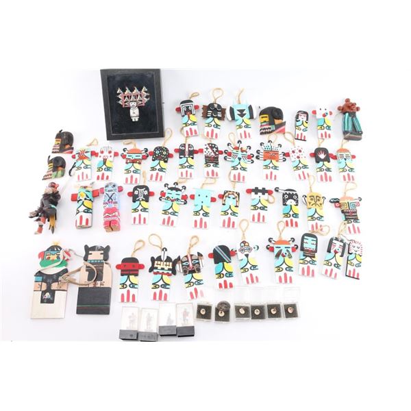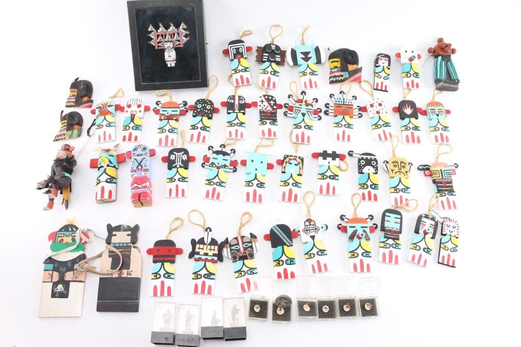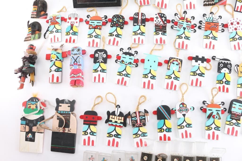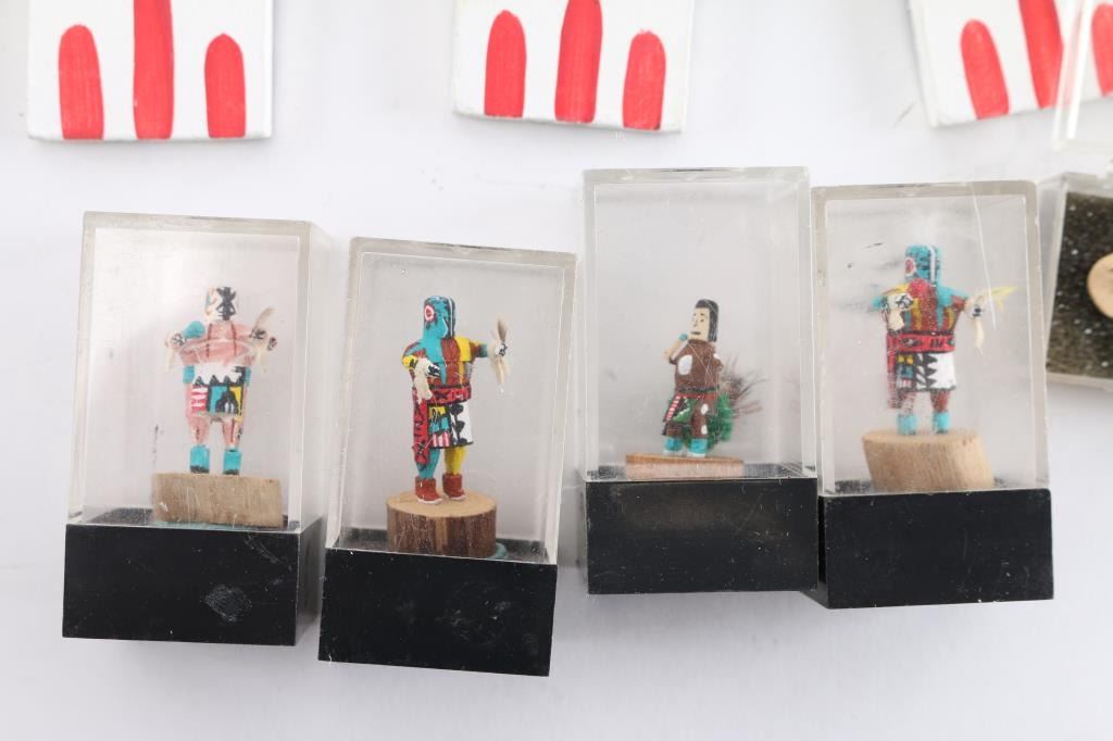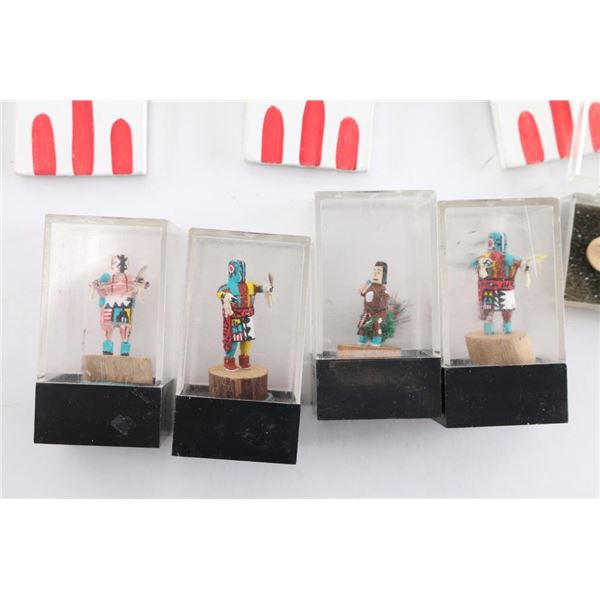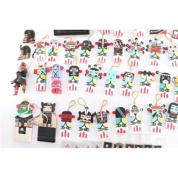 Multiple flat Kachinas and 10 miniature Kachinas.