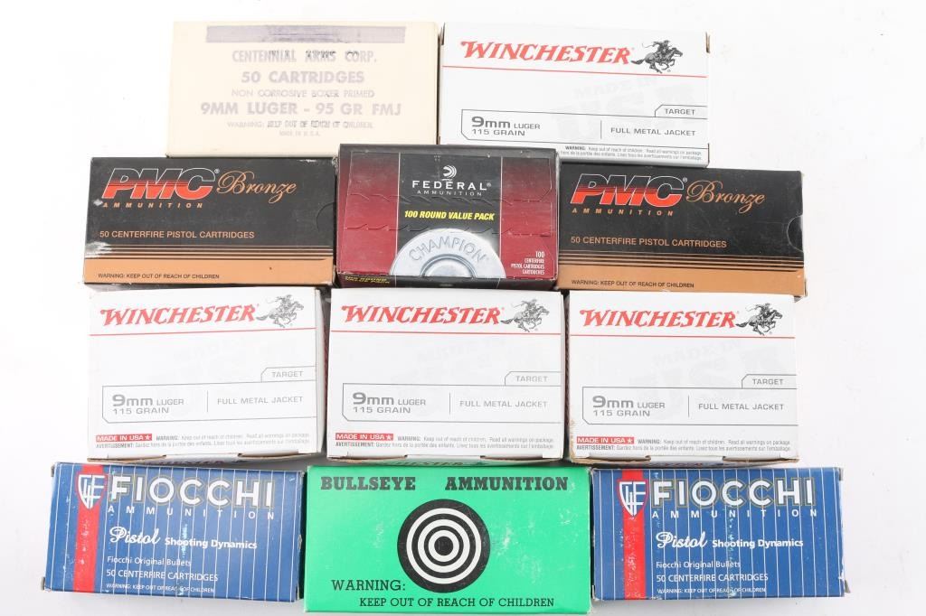 Includes: 9mm (750 rds) Federal, Centennial, Bullseye, Fiocchi, Winchester and PMC.***Counts are approximate (+-)***