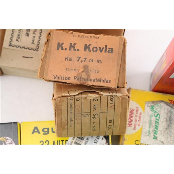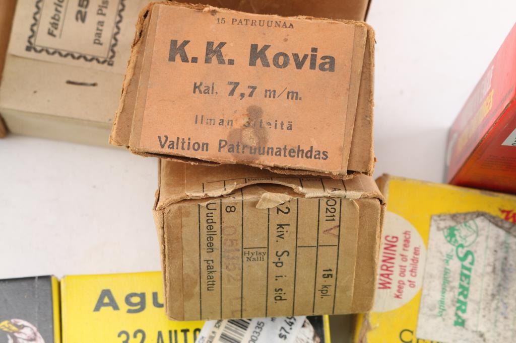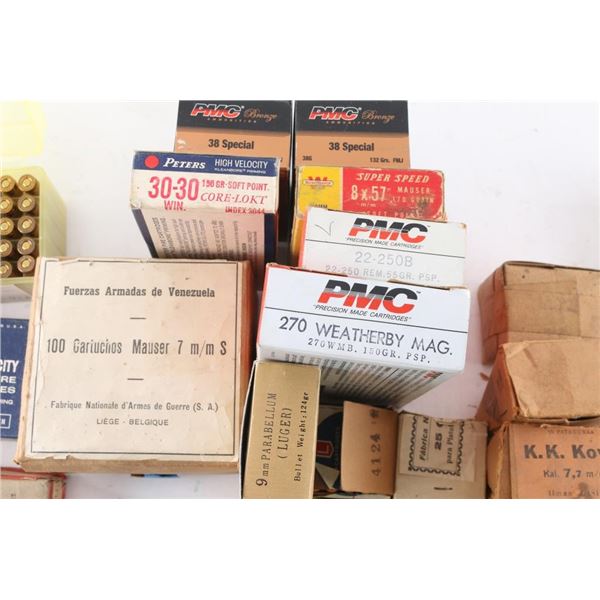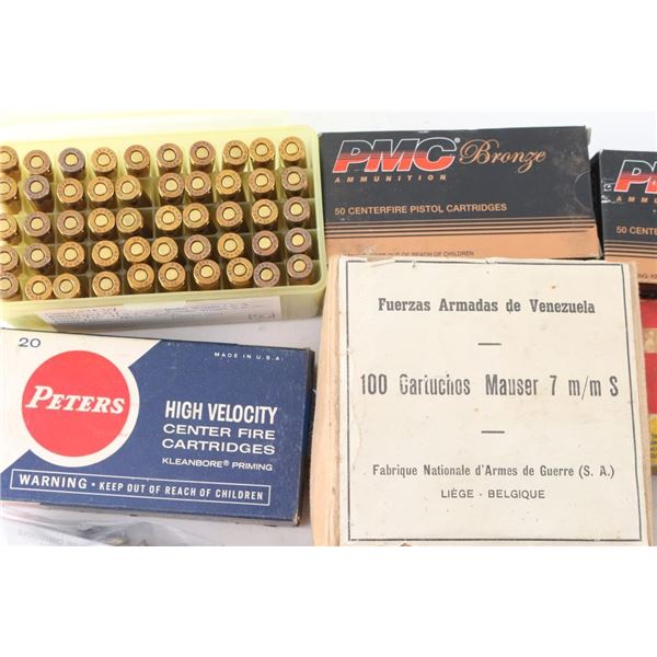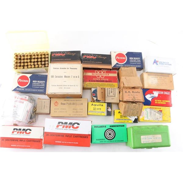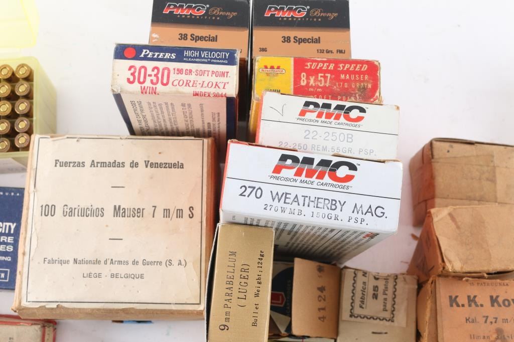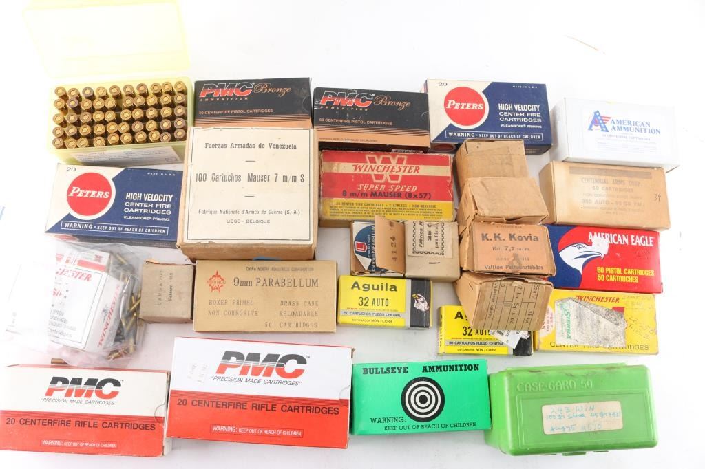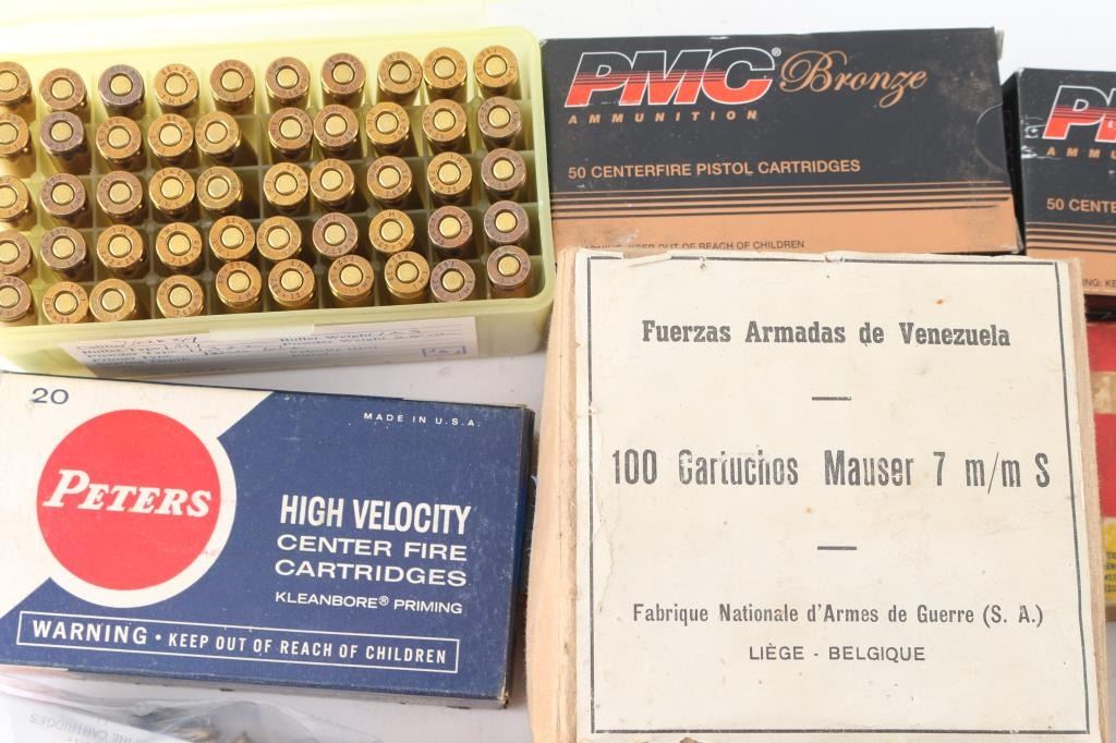 Includes: .357 MAG (50rds); .380 (80 rds); .38 SPL (100 rds); 30-30 (40 rds); 22-250 (40 rds); 9mm (175 rds); .270 WBY (20 rds); 7.62x39 (70 rds); .32 ACP ( 100rds); 8mm Mauser (20 rds); .303 British (20 rds); 7mm Mauser (110 rds); .243 (13 rds); 7.62.54R (15 rds); .25 ACP (50 rds); 22 LR (300 rds).***Counts are approximate (+-)***