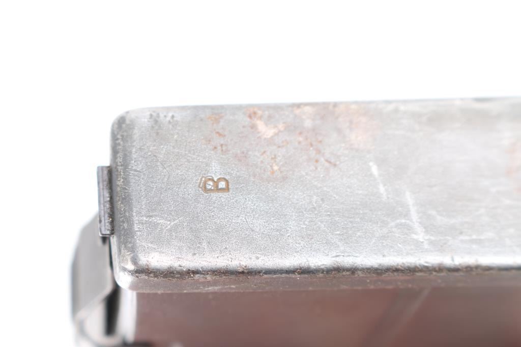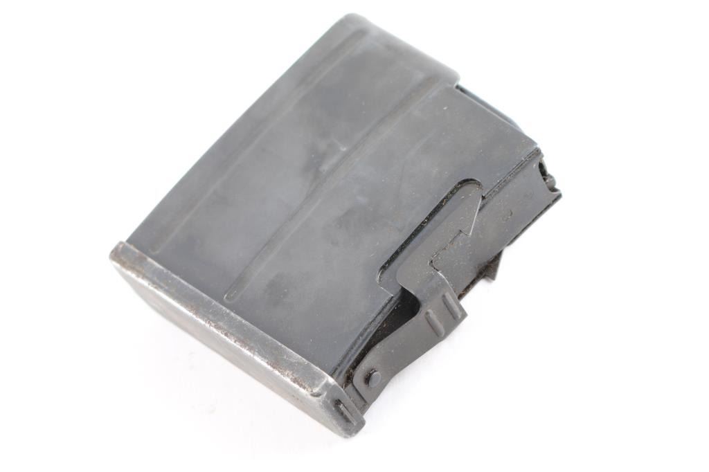 (1) Original Swedish Ljungman 6.5x55 AG42B, AG42 Magazine. Marked on the top front edge with a circled “J” and the letter B. Back edge is marked with a crown in the window above the catch. Bottom is marked with the letter B. In very good condition.